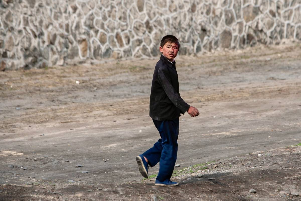 Chlapec se zkrvavenou tváří