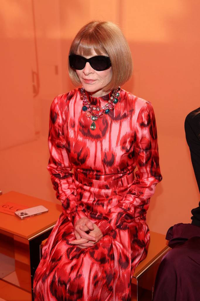 Svým přísným pohledem přišla kolekci zhodnotit i Anna Wintour, která ani tentokrát nesundala z očí sluneční brýle