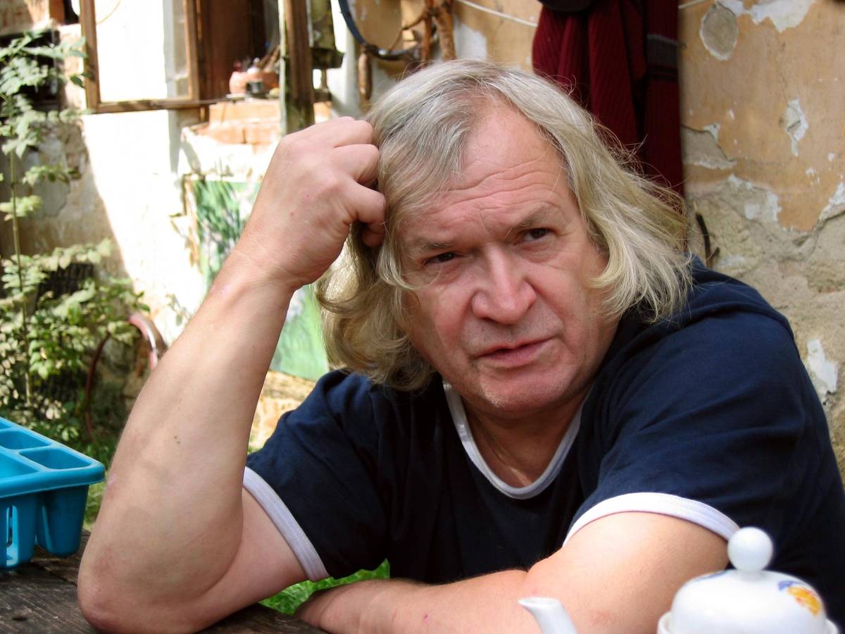 (Petr Uhl (vpravo) a básník Ivan „Magor“ Jirous, 1987.)