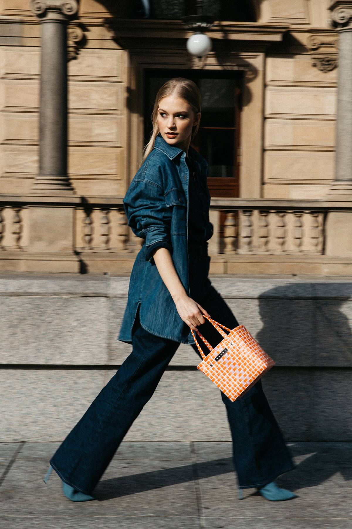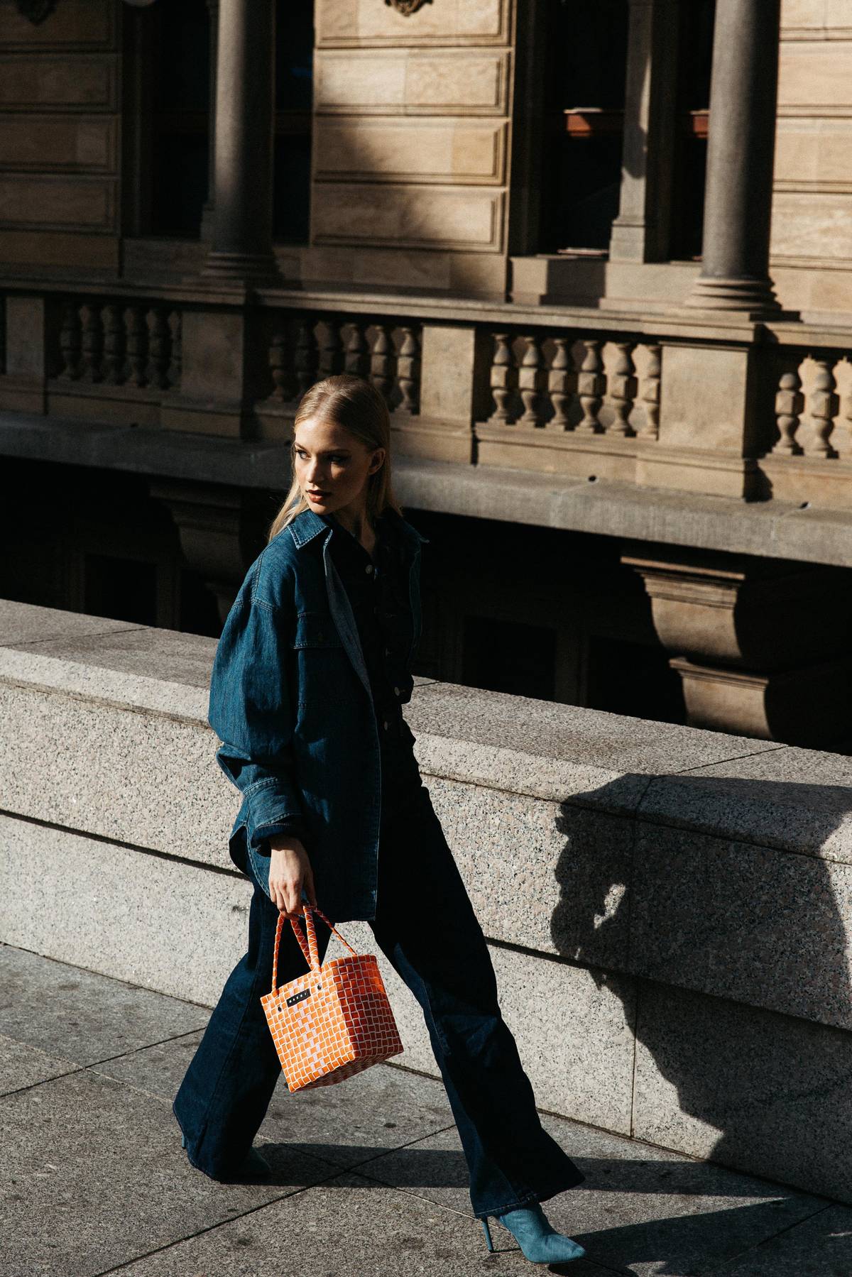 Džínový overal Levi's, 3 399 Kč. Džínová košile Lindex, 1 199 Kč. Taška Marni, prodává Zalando, 3 600 Kč