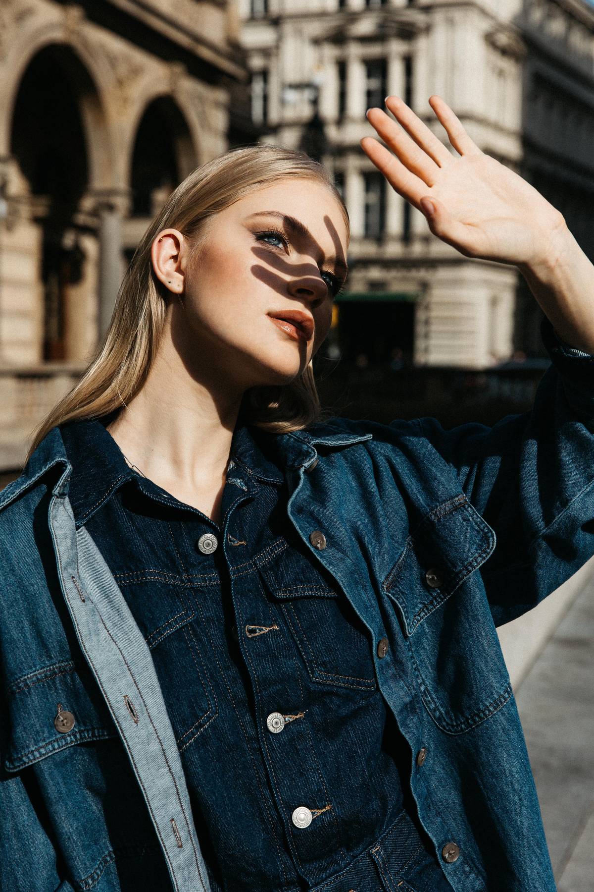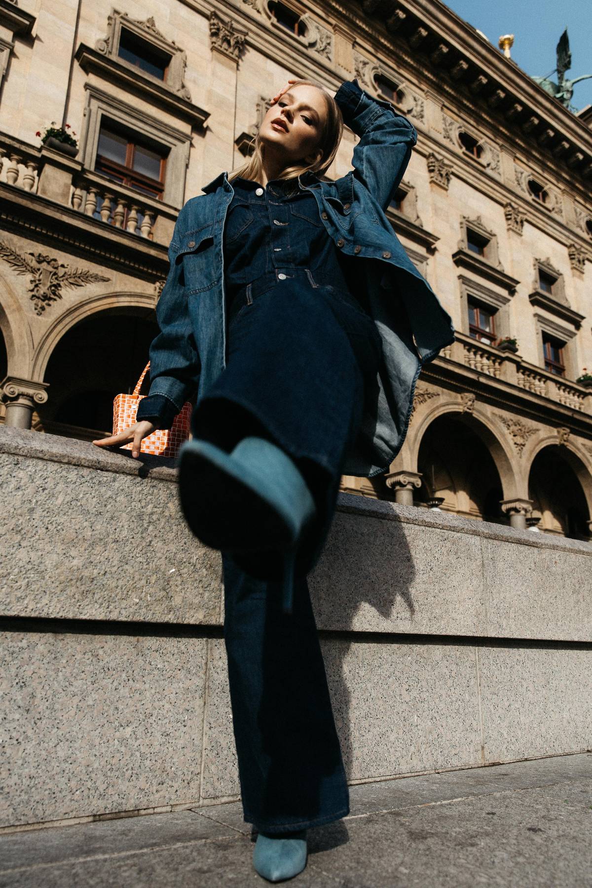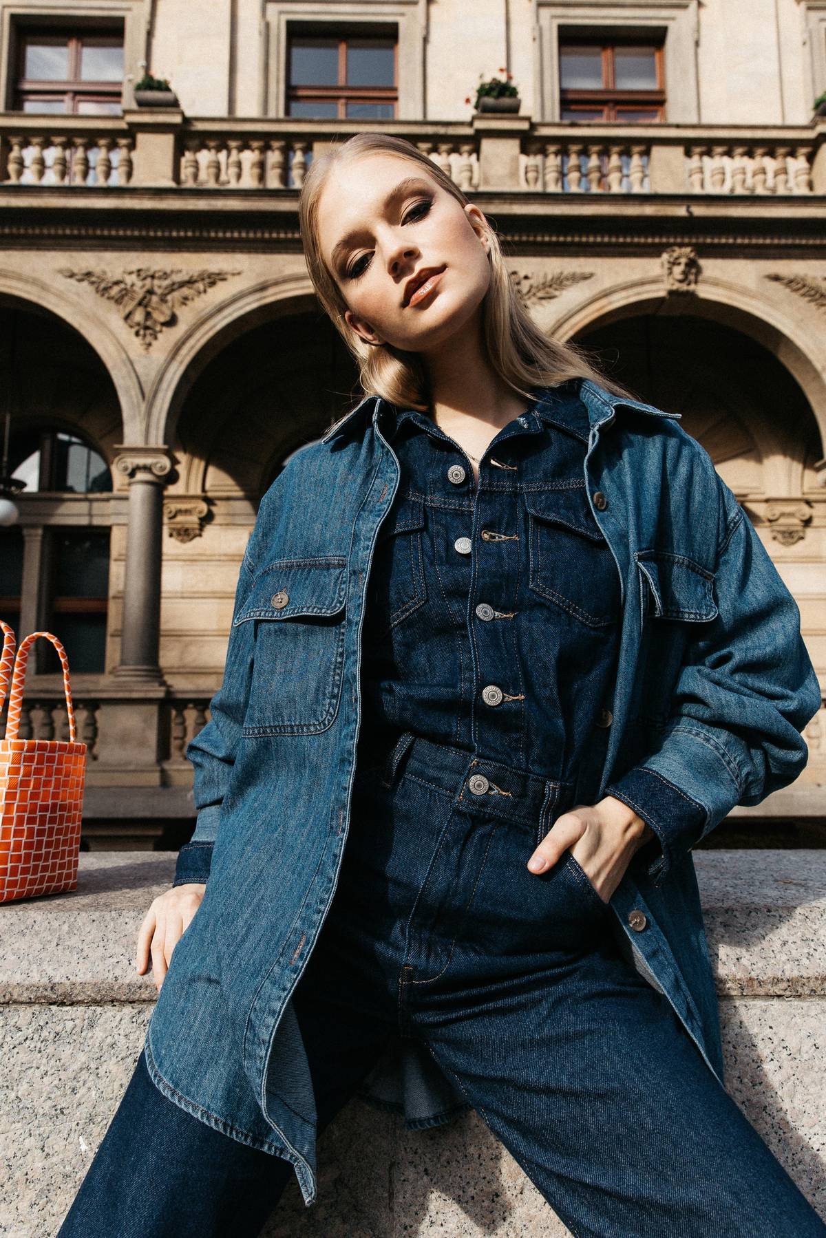 Džínový overal Levi's, 3 399 Kč. Džínová košile Lindex, 1 199 Kč