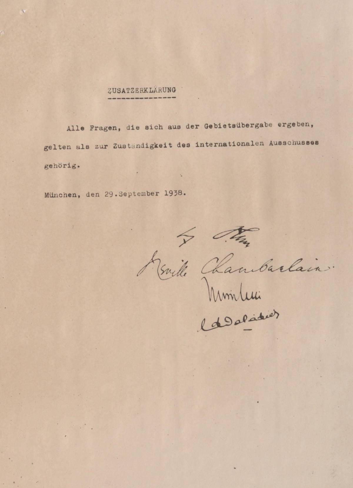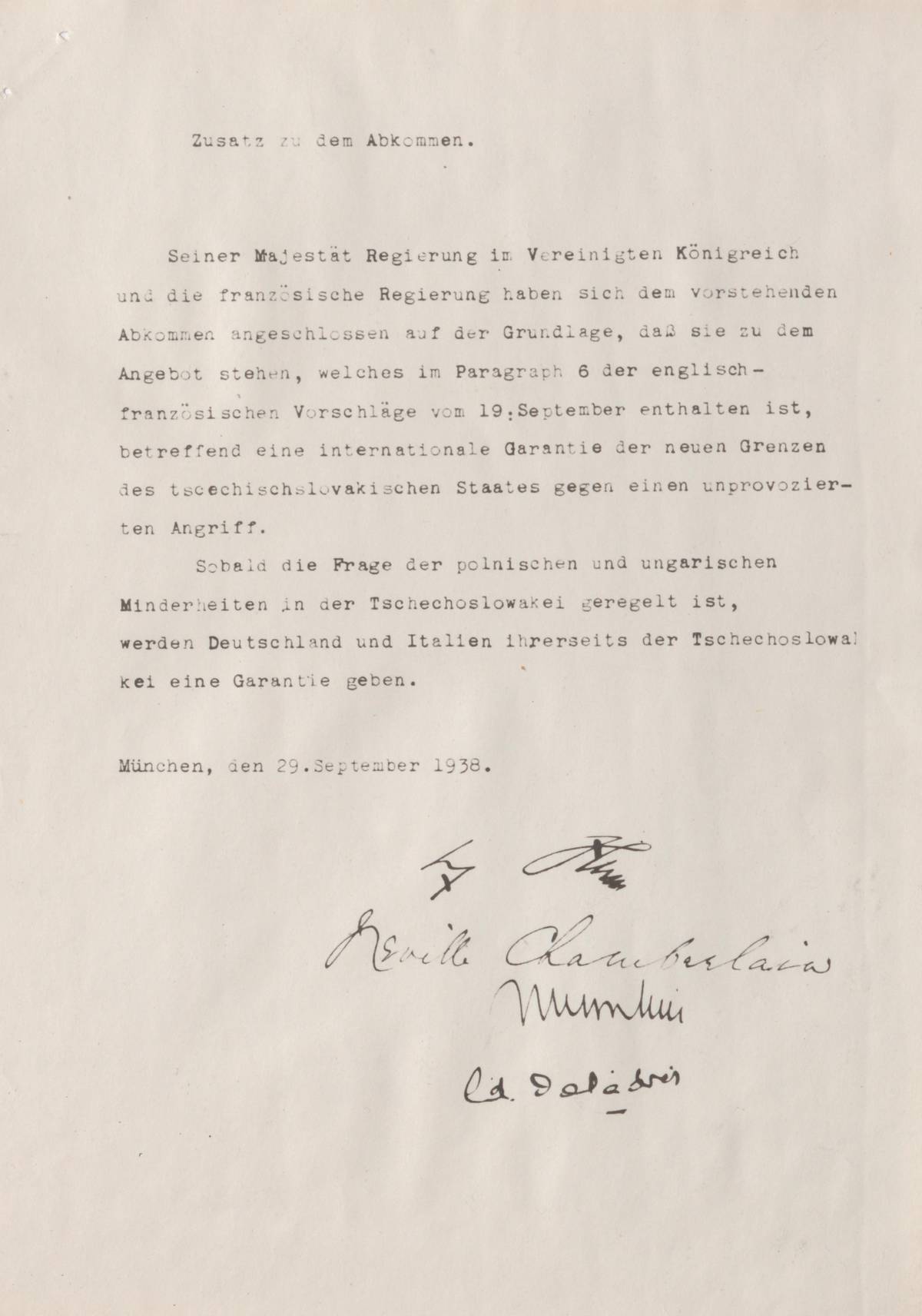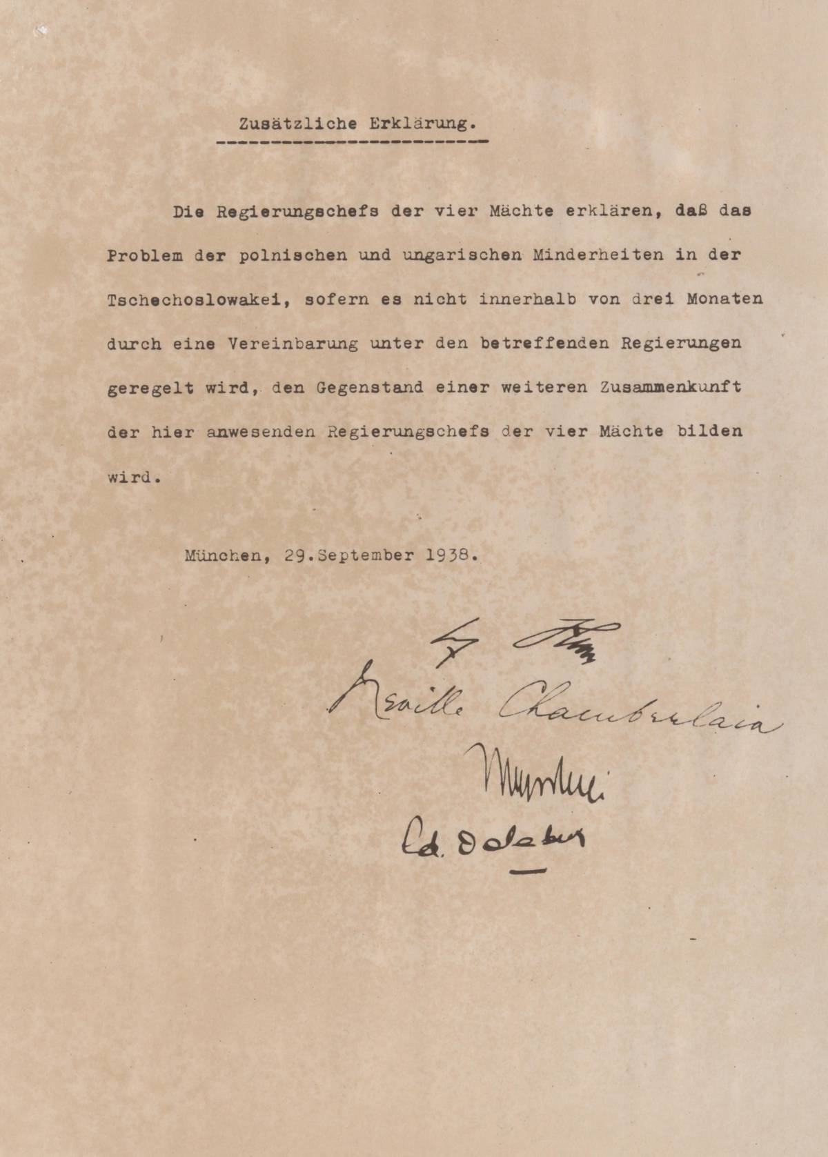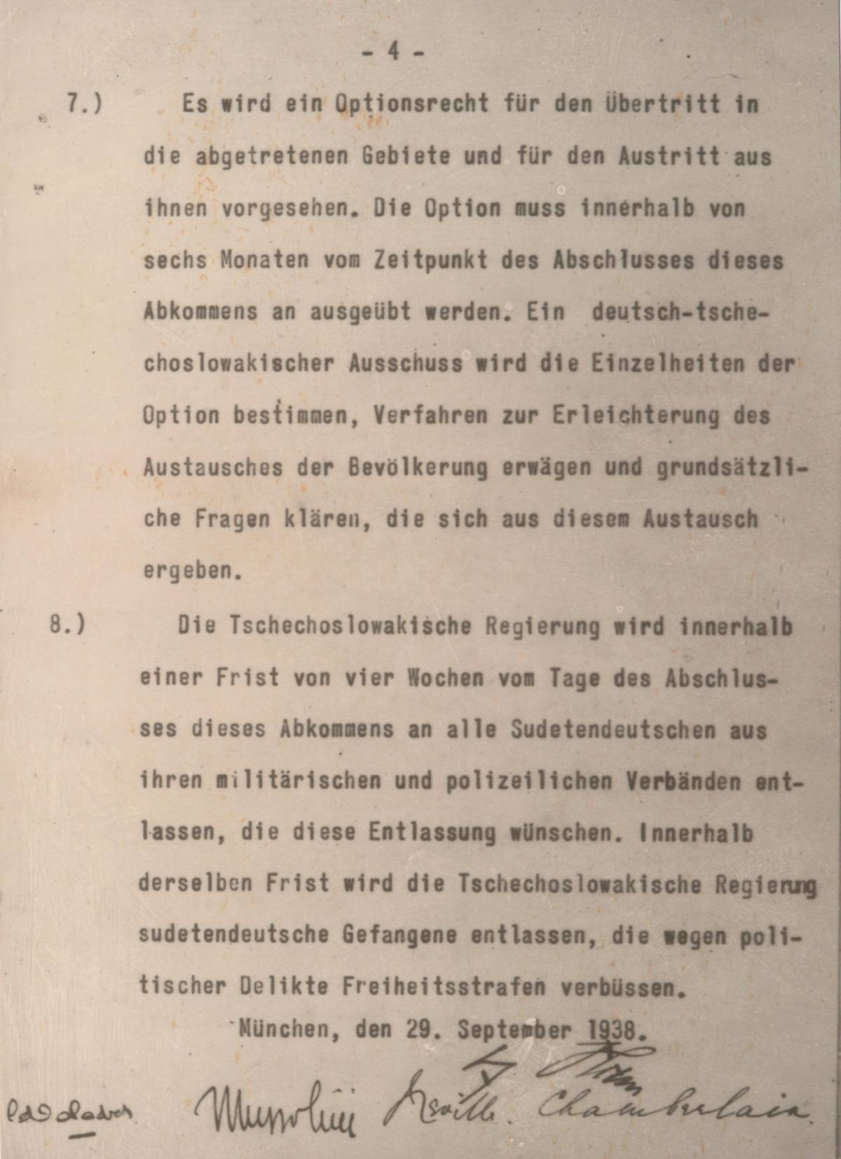 Fotokopie podepsané německé verze Mnichovské dohody z 29.9.1938.
