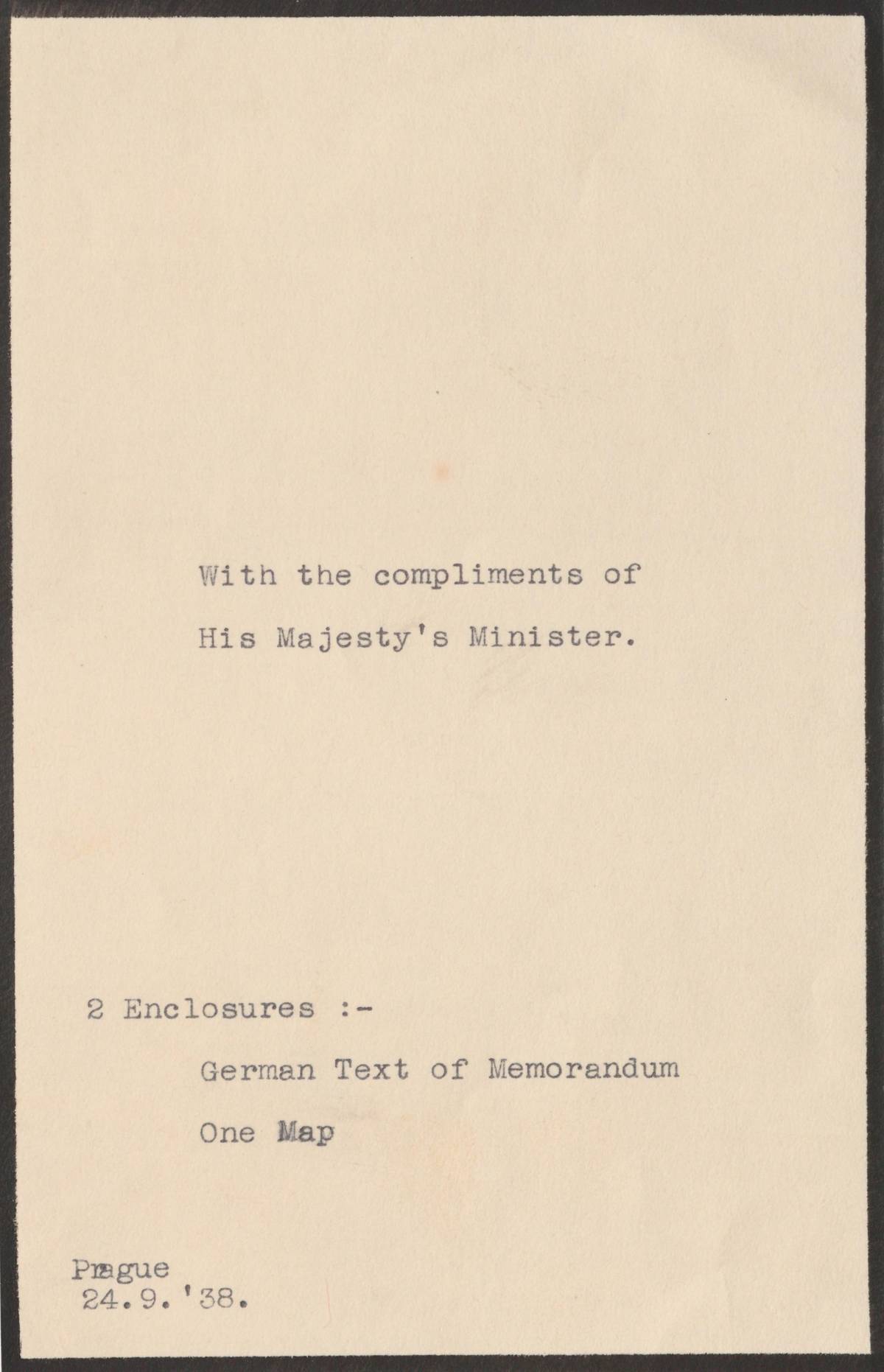 Zpráva britského premiéra Chamberlaina prezidentu Benešovi předaná prostřednictvím britského vyslance Newtona 27.9. večer. Chamberlain v ní informuje Beneše o Hitlerově záměru napadnout vojensky Československo dne 28.9. ve 14.00 hodin.