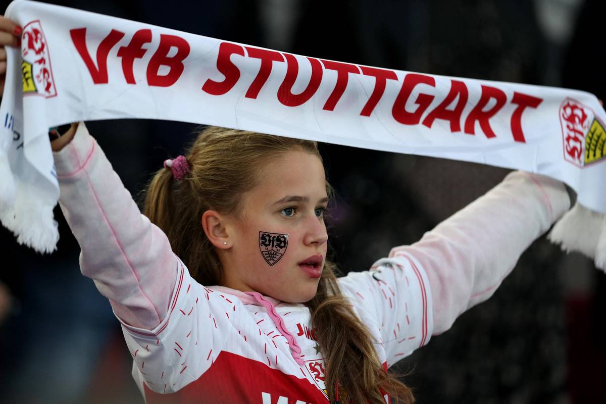 Fanynka Stuttgartu během zápasu Ligy mistrů s pražskou Spartou