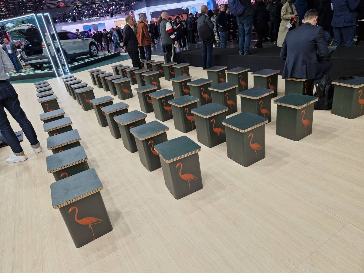 Elroq Škoda spojuje s plameňáky, protože auto sedí výše a lépe se do něj nastupuje. Ti nechyběli na stoličkách pro přítomné novináře.