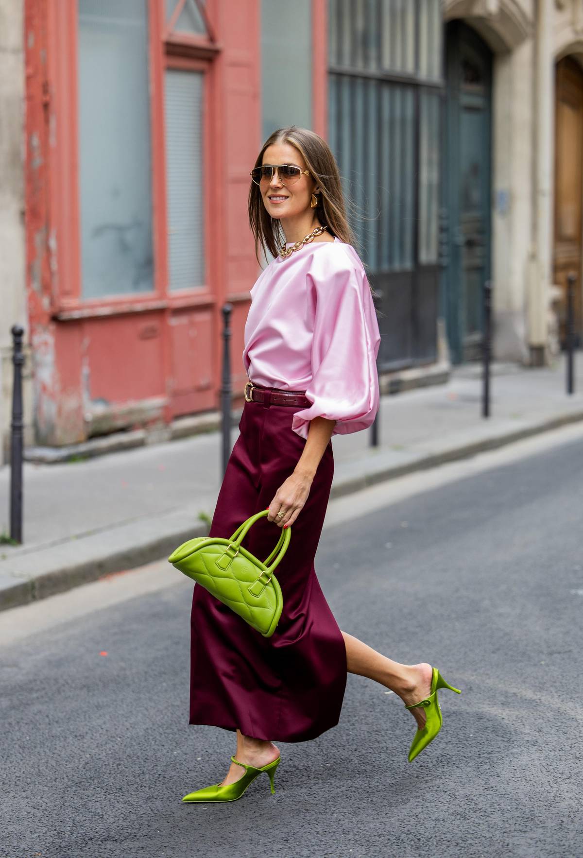 Jít na to můžete i obráceně – v tomto případě slouží bordó jako doplněk k limetkovému kompletu