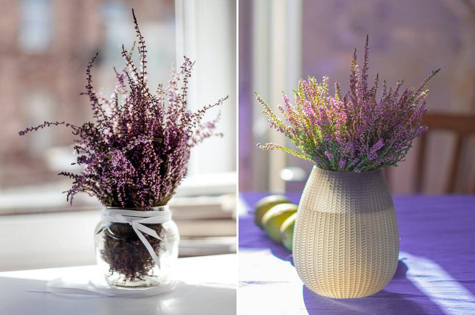 Vřes jako kytka do vázy? Proč ne, můžete ho tam dát ostříhaný, ale když se vejde, tak i s květináčem - a bude mu to nejen slušet, ale vydrží opravdu dlouho