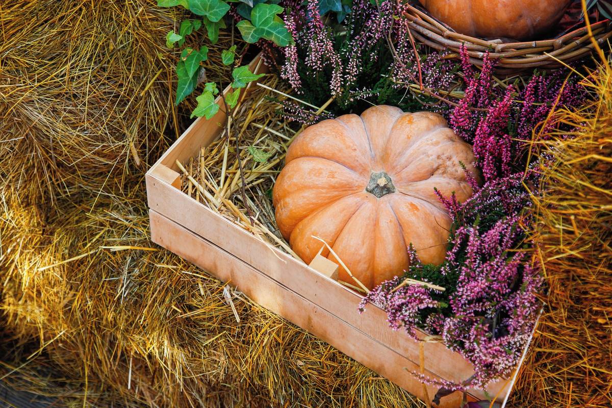 Na zápraží se bude skvěle vyjímat bedýnka, do které stačí dát slámu, posadit velkou dýni a kolem pár květináčů s vřesy