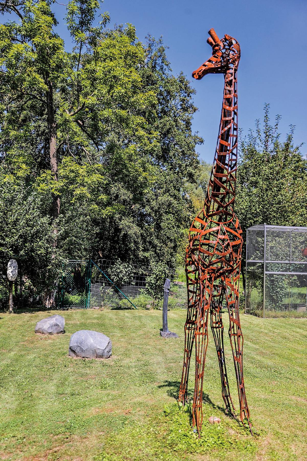 Žirafu i koně vytvořili mladí umělci, které Marian Jelínek podporuje, a ti mu občas něco věnují.