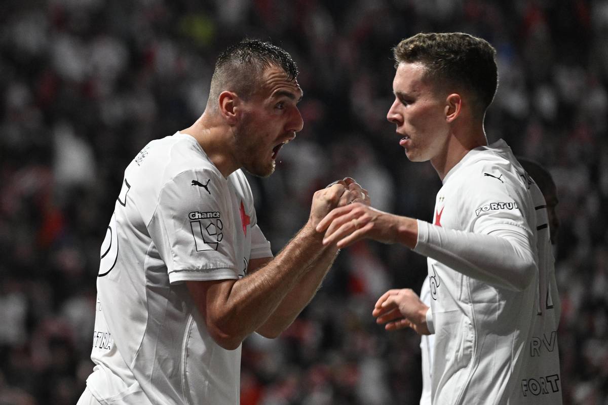 Utkání 13. kola první fotbalové ligy Slavia Praha – Dukla Praha, 27. října 2024, Praha. Tomáš Chorý ze Slavie se raduje z gólu.