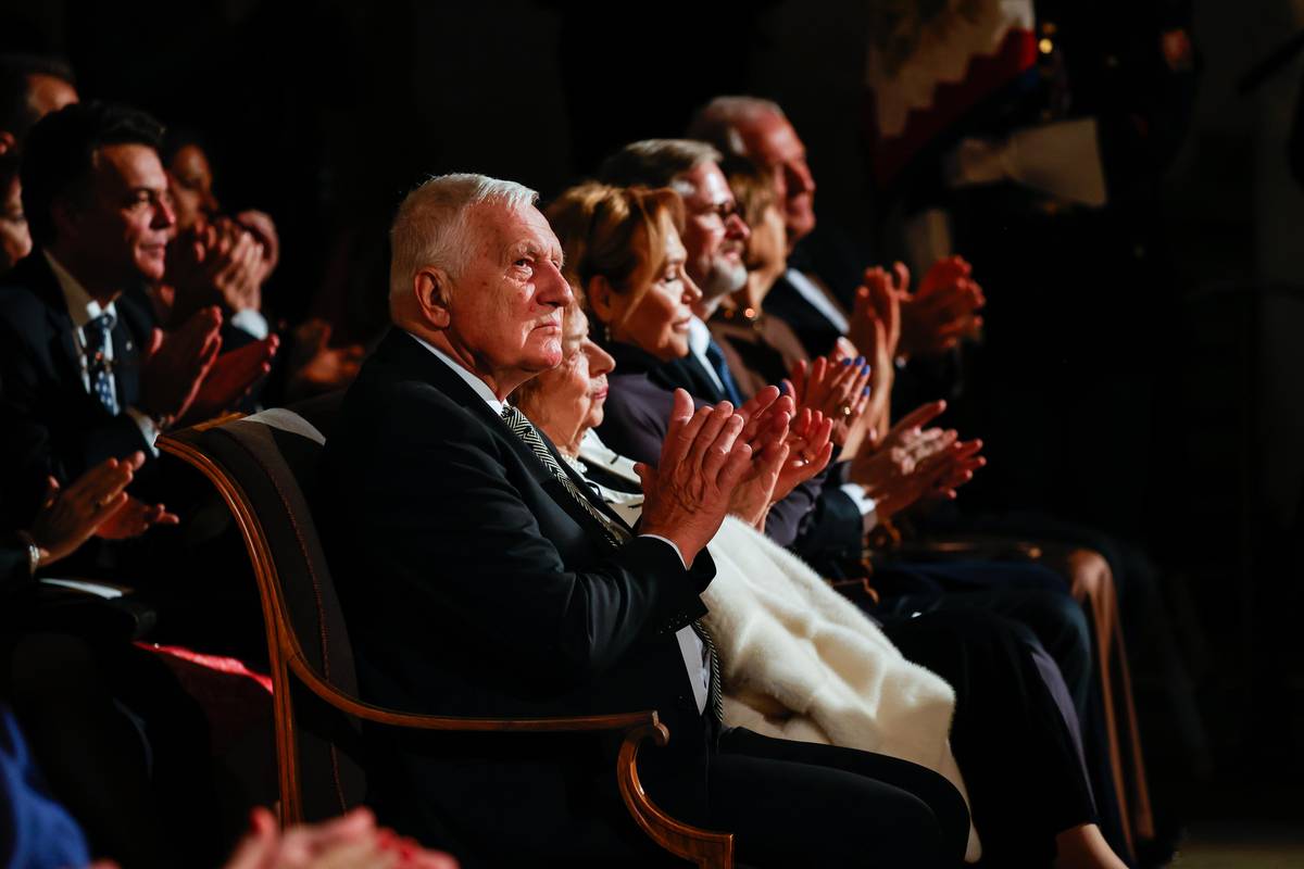Projev a udělování vyznamenání sledoval i bývalý prezident Václav Klaus s manželkou Livií a bývalou první dámou Dagmar Havlovou.