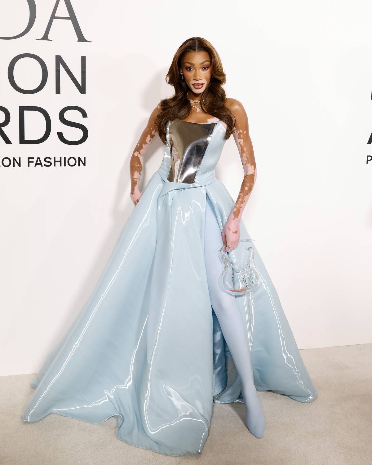 Pohádkový střih v nepohádkovém pojetí. Modelka Winnie Harlow přišla na předávání cen v latexových šatech od Kate Barton