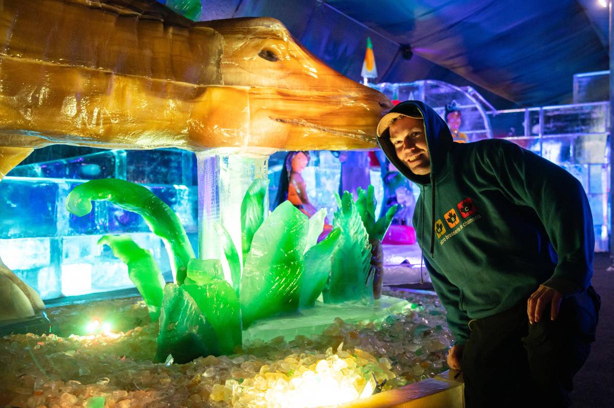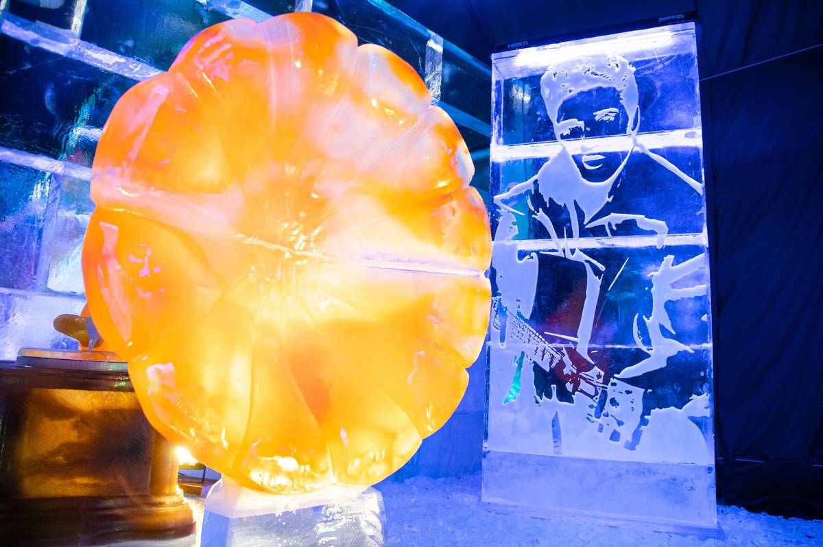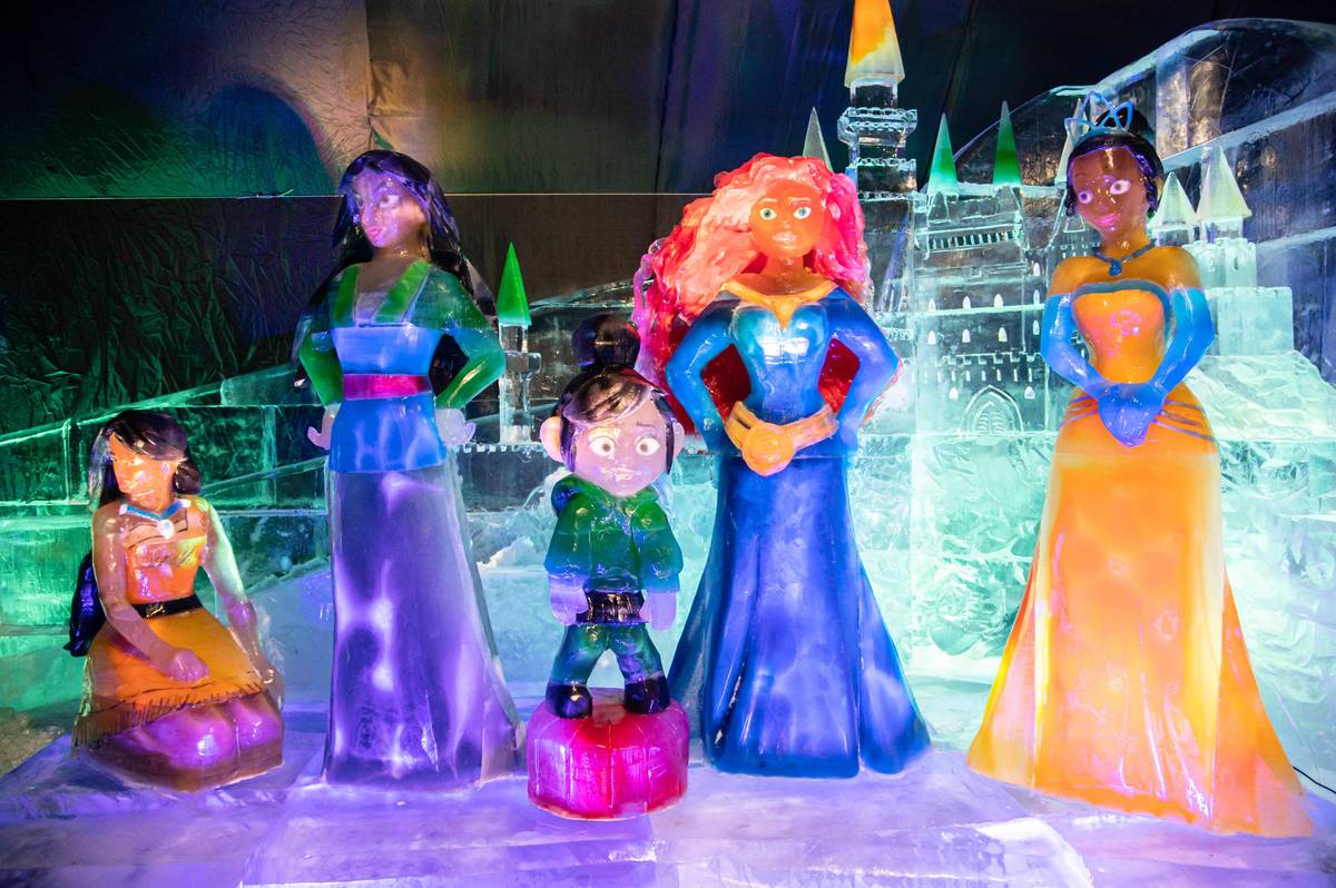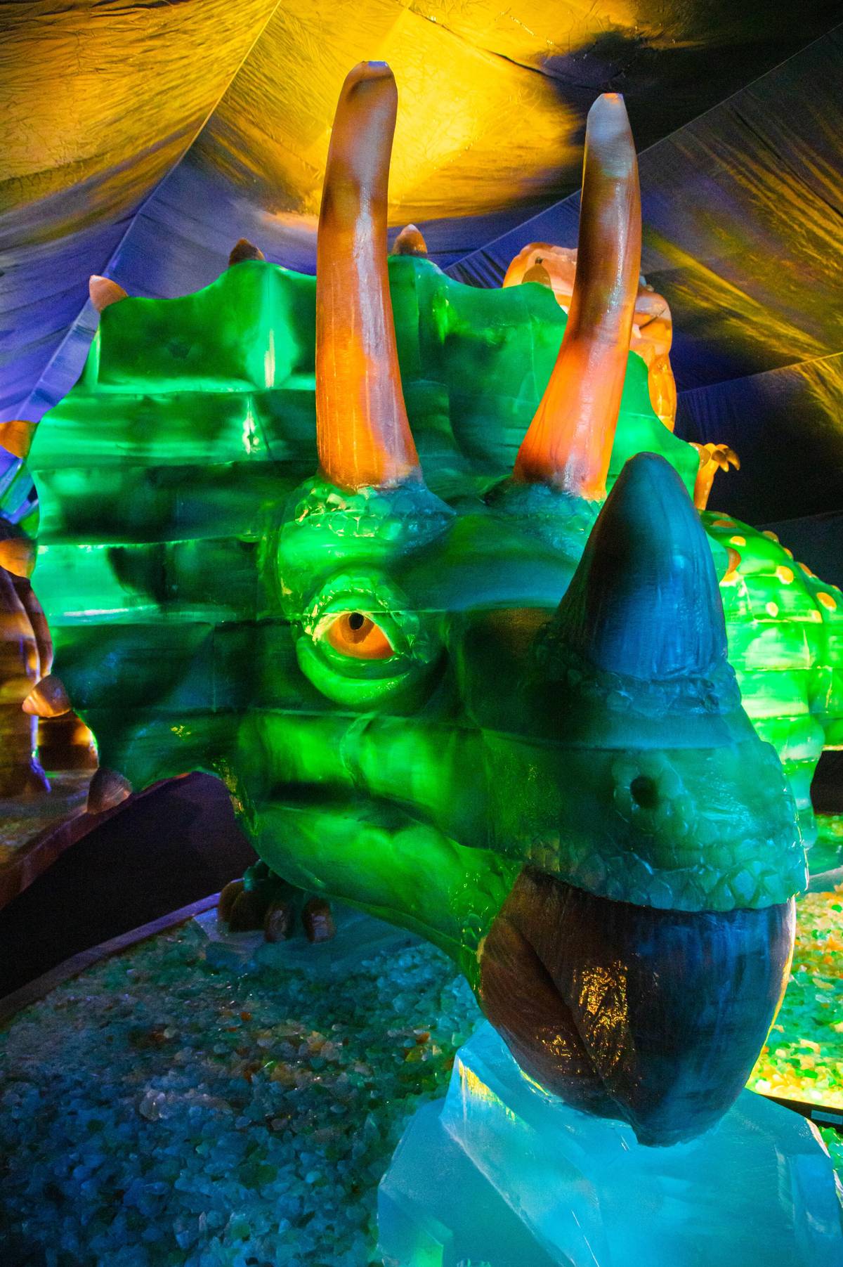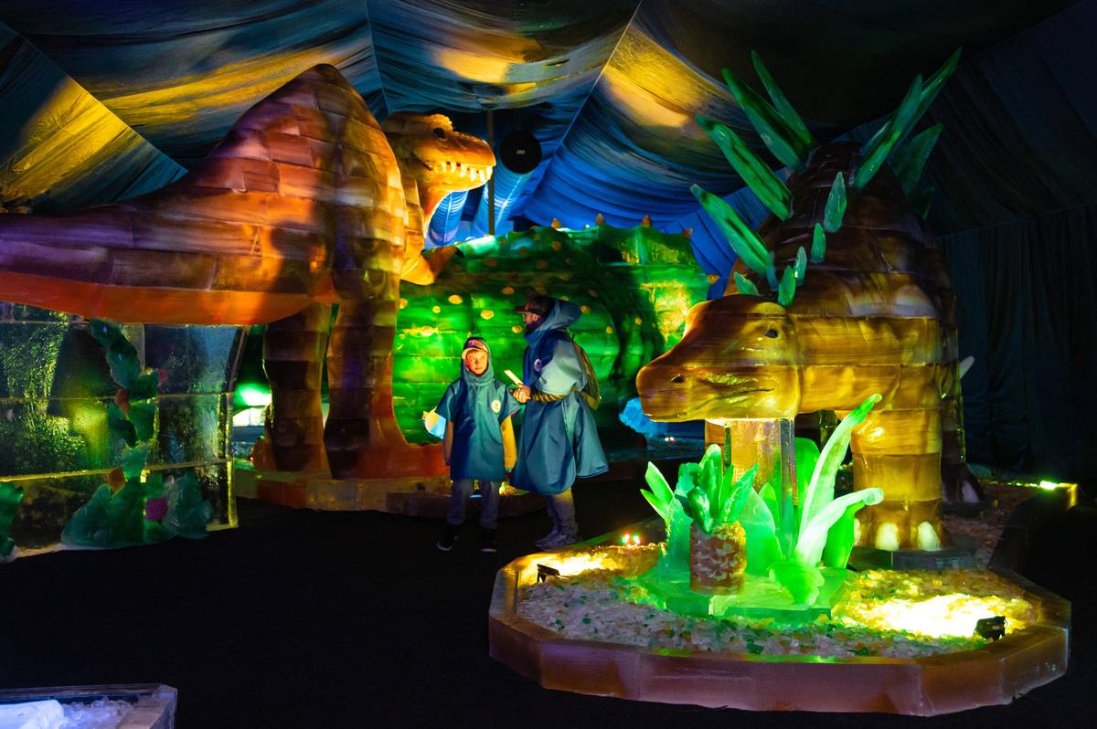 Mezi největší sochy patří tři dinosauři, na kterých řezbáři pracovali celkem 820 hodin. Využilo se na ně 32 tun barevného či čirého ledu.
