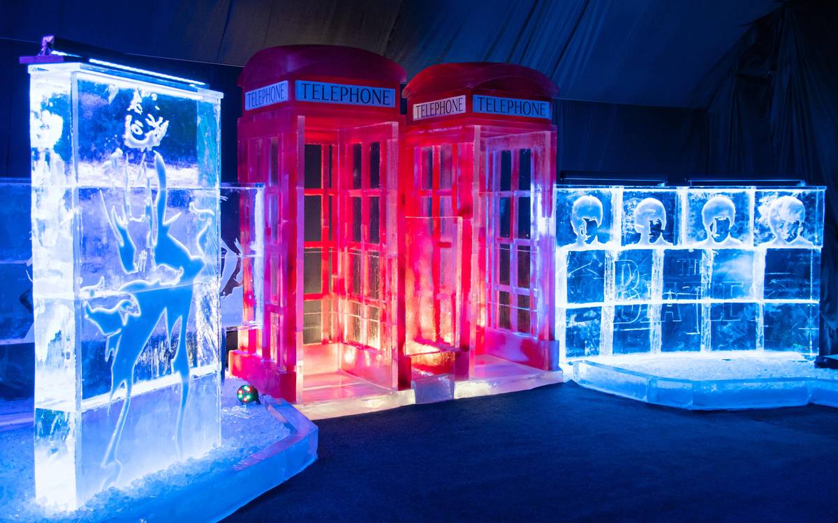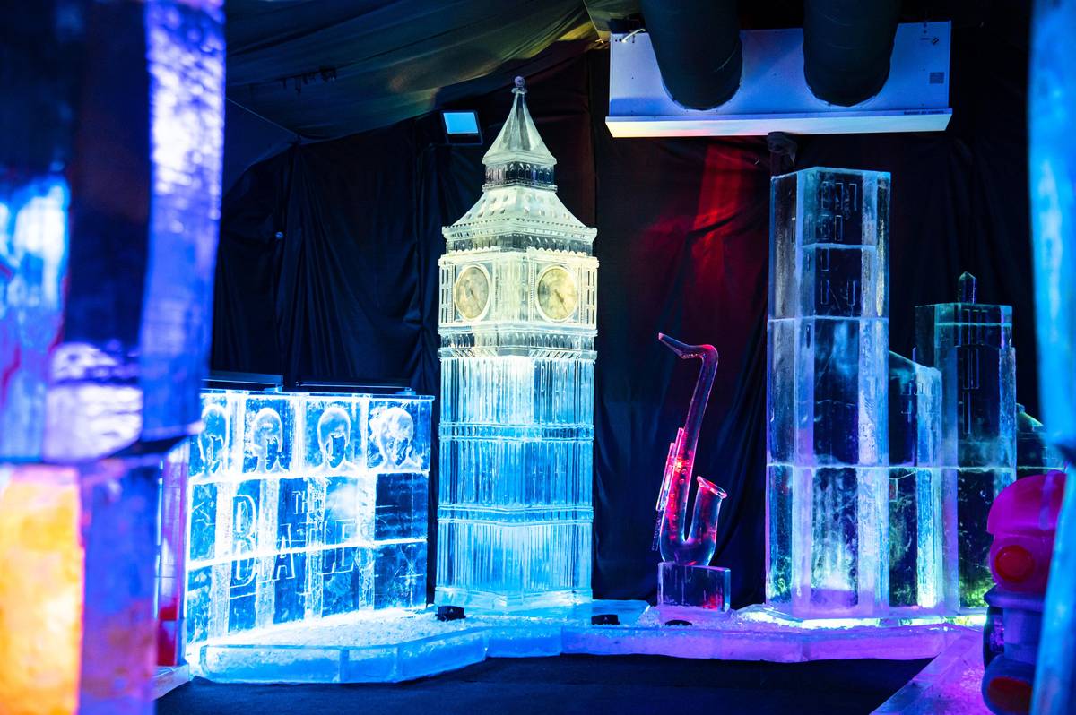 Londýnský Big Ben. Návštěvníci by se na výstavu měli teple obléci, jelikož ve stanu se kvůli sochám udržuje velmi nízká teplota. Organizátoři nicméně také zapůjčují teplá ponča, která ochrání proti chladu.