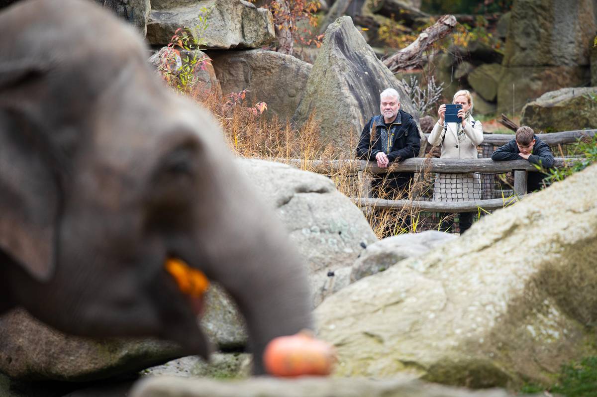 Sloni menší dýně buď rovnou zkonzumovali v ústech, nebo si nejdříve tykev rozdrtili nohou a pak si kusy odlamovali chobotem.
