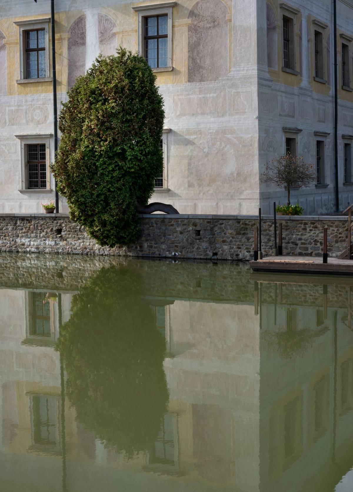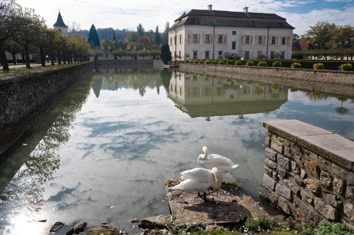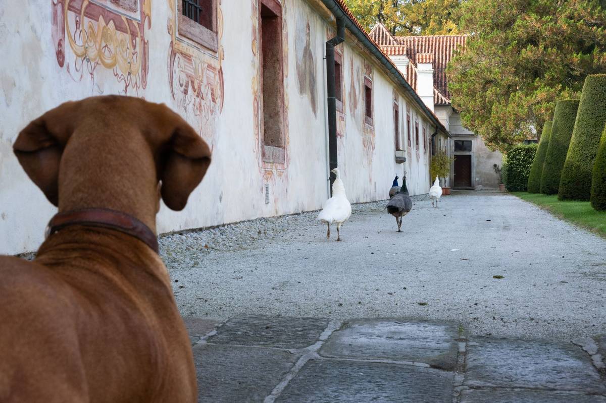 Zámecké zdi zdobí dobové fresky a zahradou se procházejí čtyři ušlechtilí pávi.