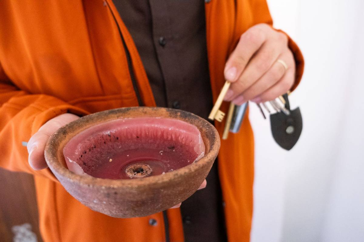 "Lidé z okolí nám sem nosí nedohořelé svíčky a já je pak vydlabávám a formuji do těchto nádob. Pak to samé dělám s těmi z toho, co při festivalu nedohoří," popisuje Šmíd svou mravenčí práci.