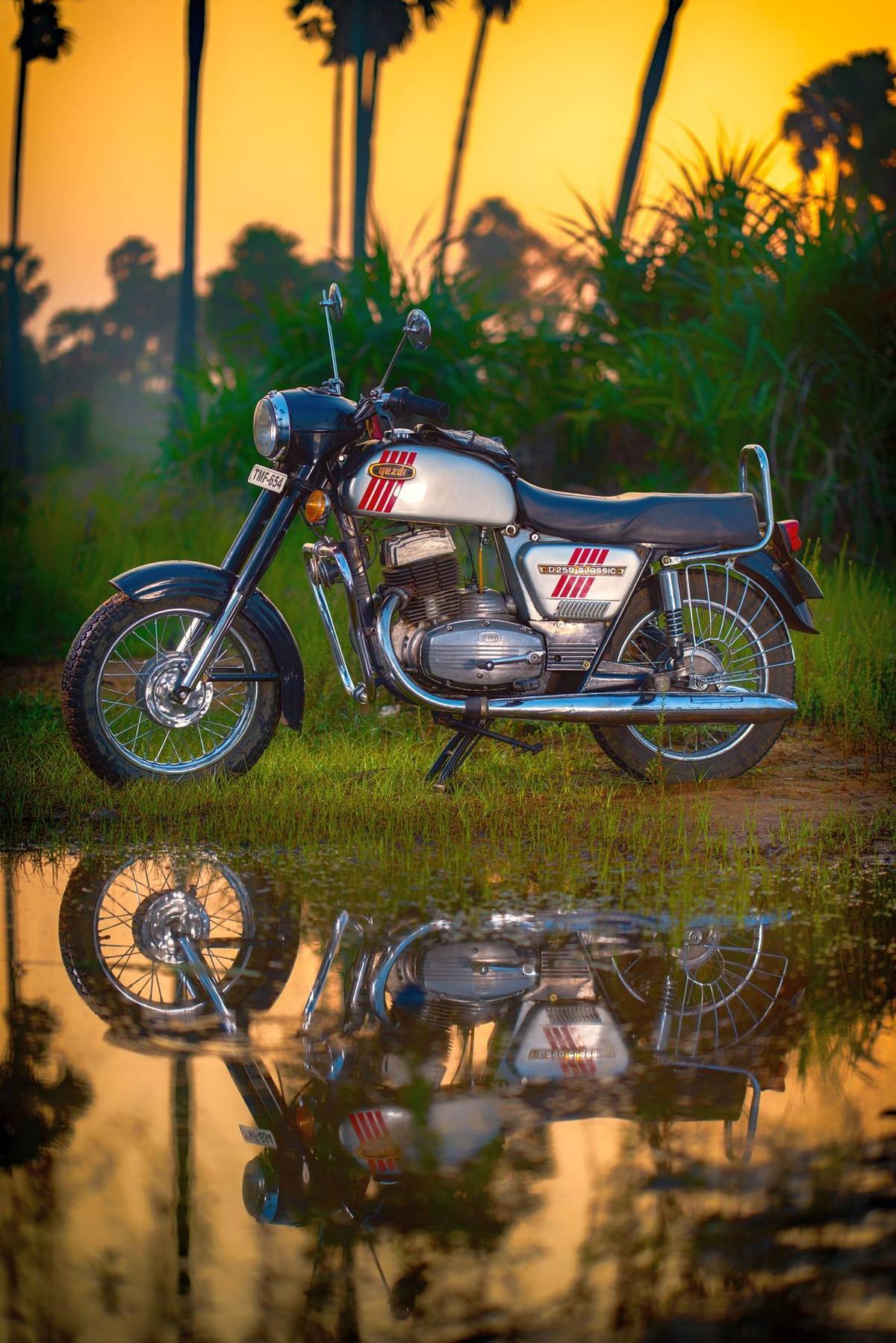 Yezdi D250 Classic. V Indii se najde také hodně nostalgiků, kteří rádi vzpomínají na motorky z 60. až 80. let. Jawy byly populární pro svou jednoduchost a také prý typický zvuk, který současným moderním strojům chybí.