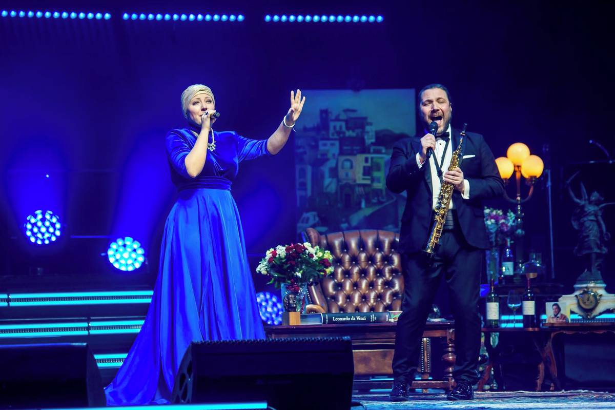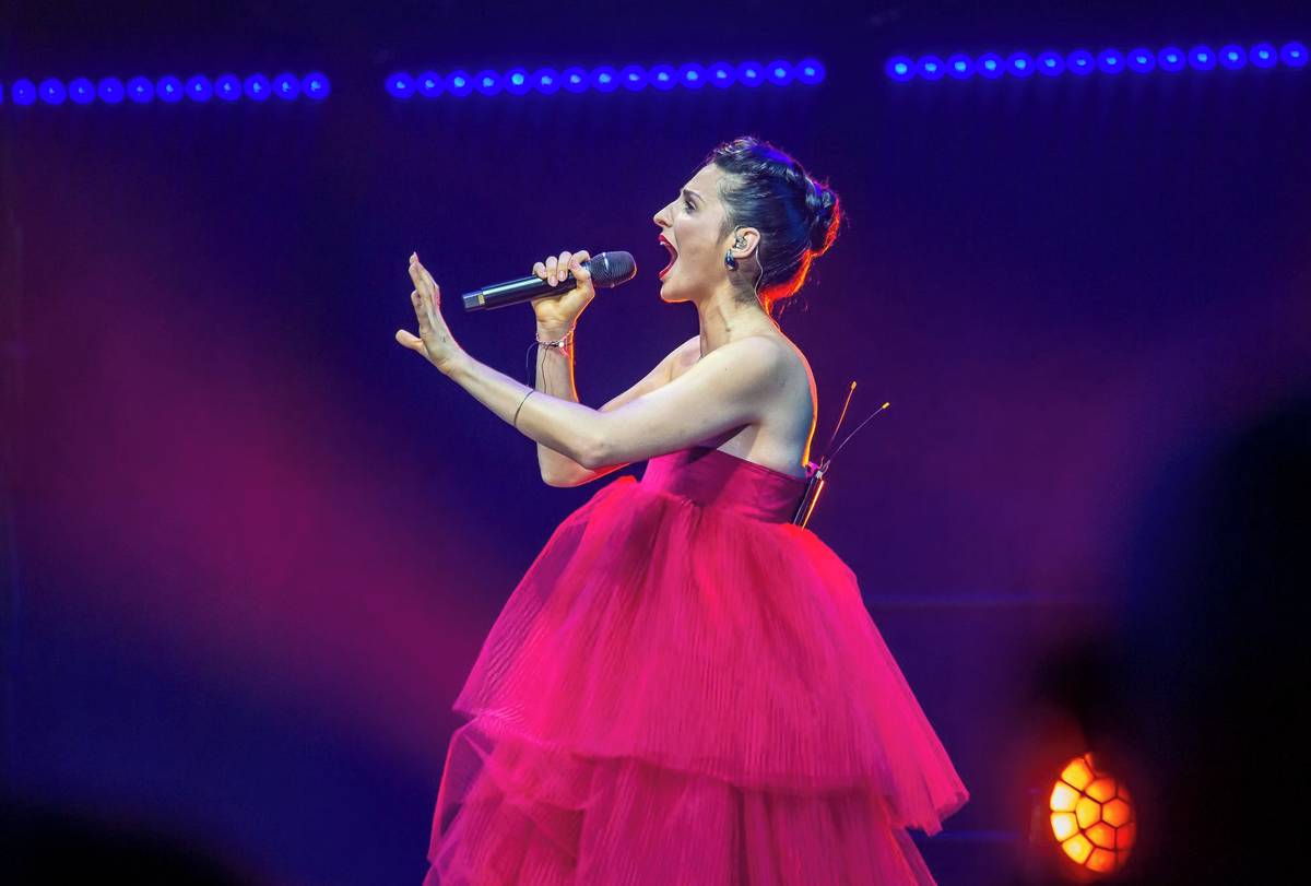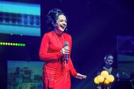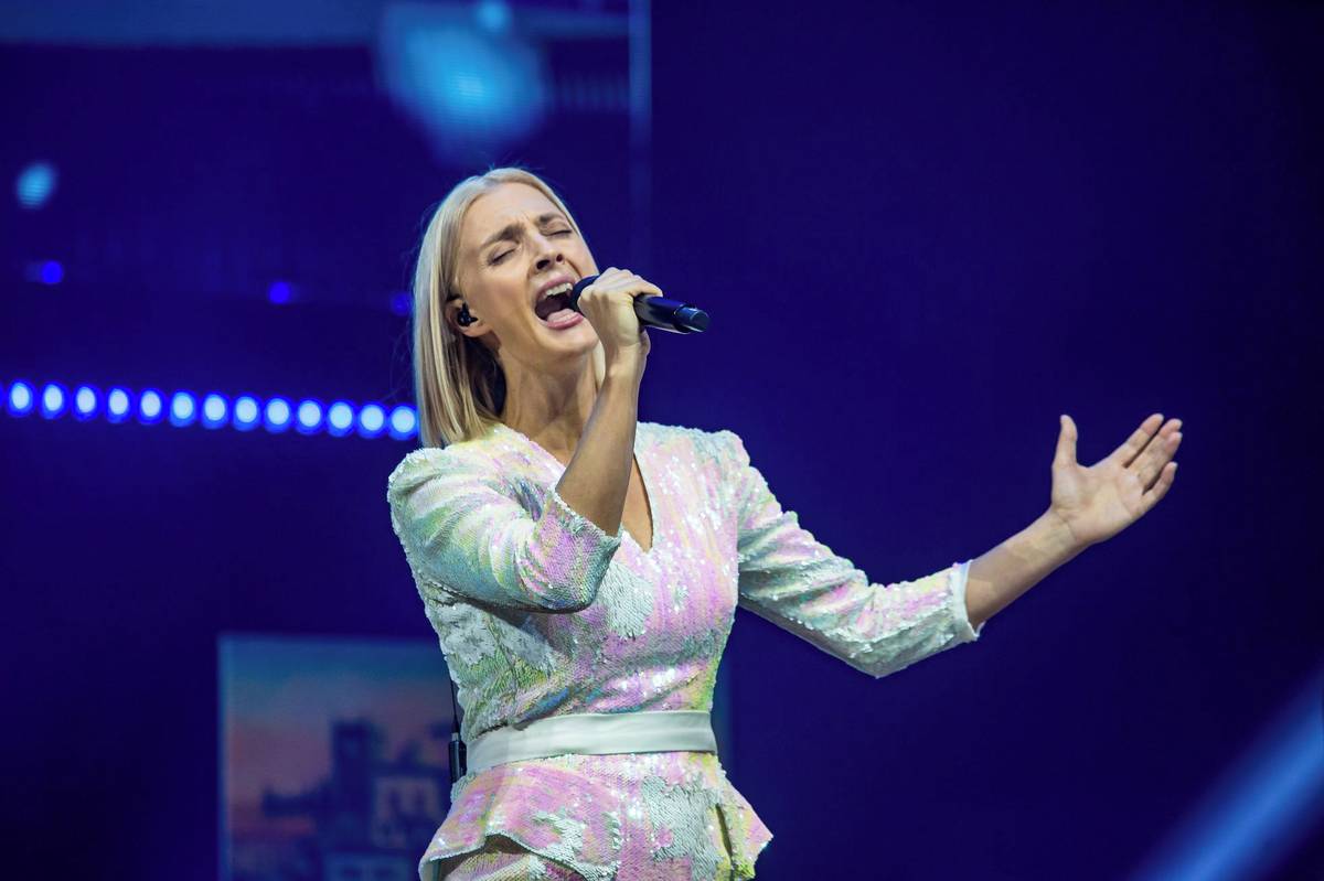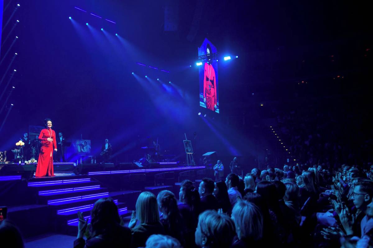 Na fotografii z úterního koncertu nazvaného Karel Gott - jeho písně žijí dál v pražské O2 areně je zpěvačka Lucie Bílá.