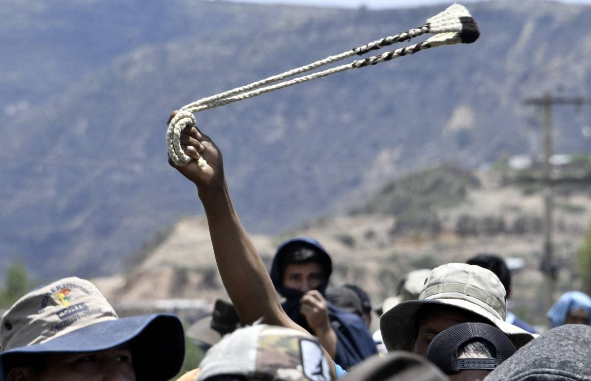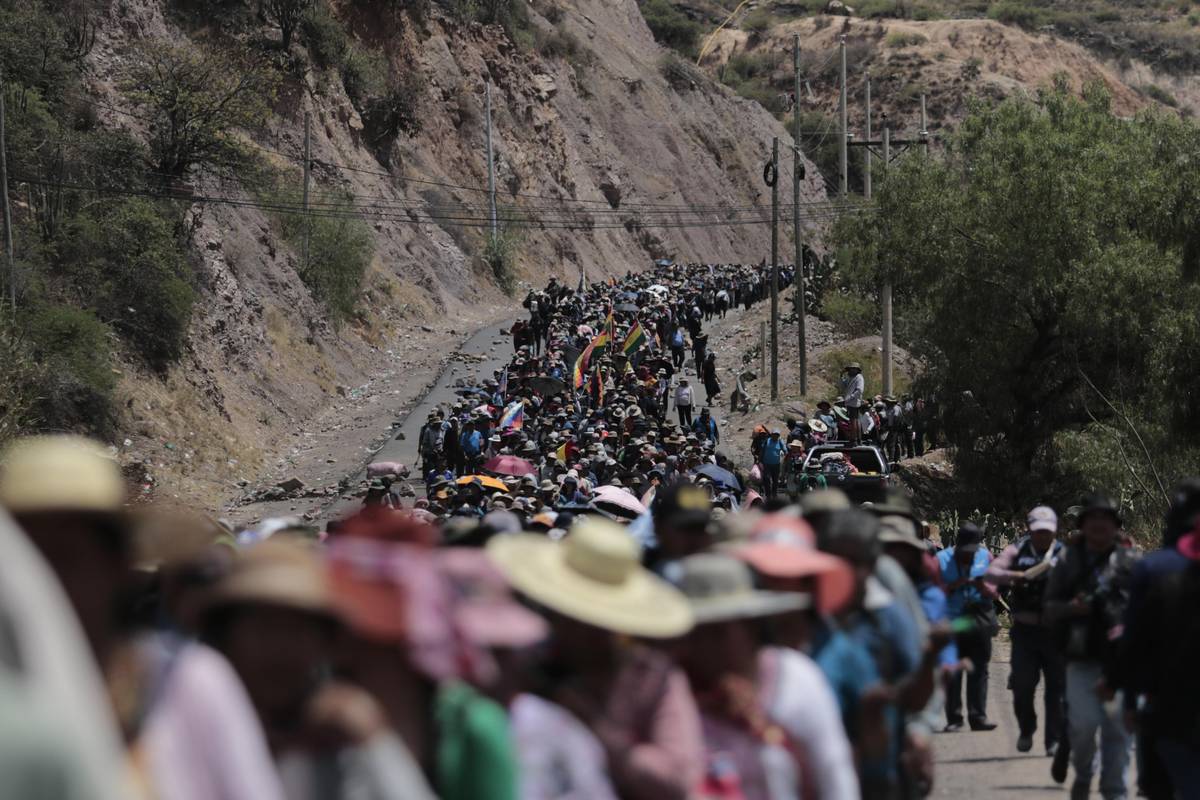 (Protestující dav v bolivijské obci Sipe Sipe, 29. října.)