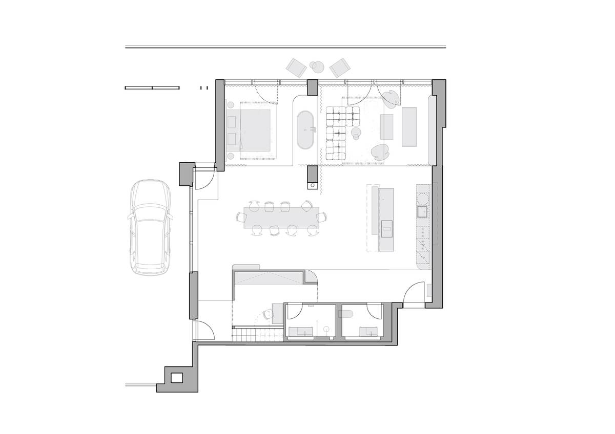 Automobily hrají vzhledem k době, jíž je styl bytu inspirován, důležitou roli.