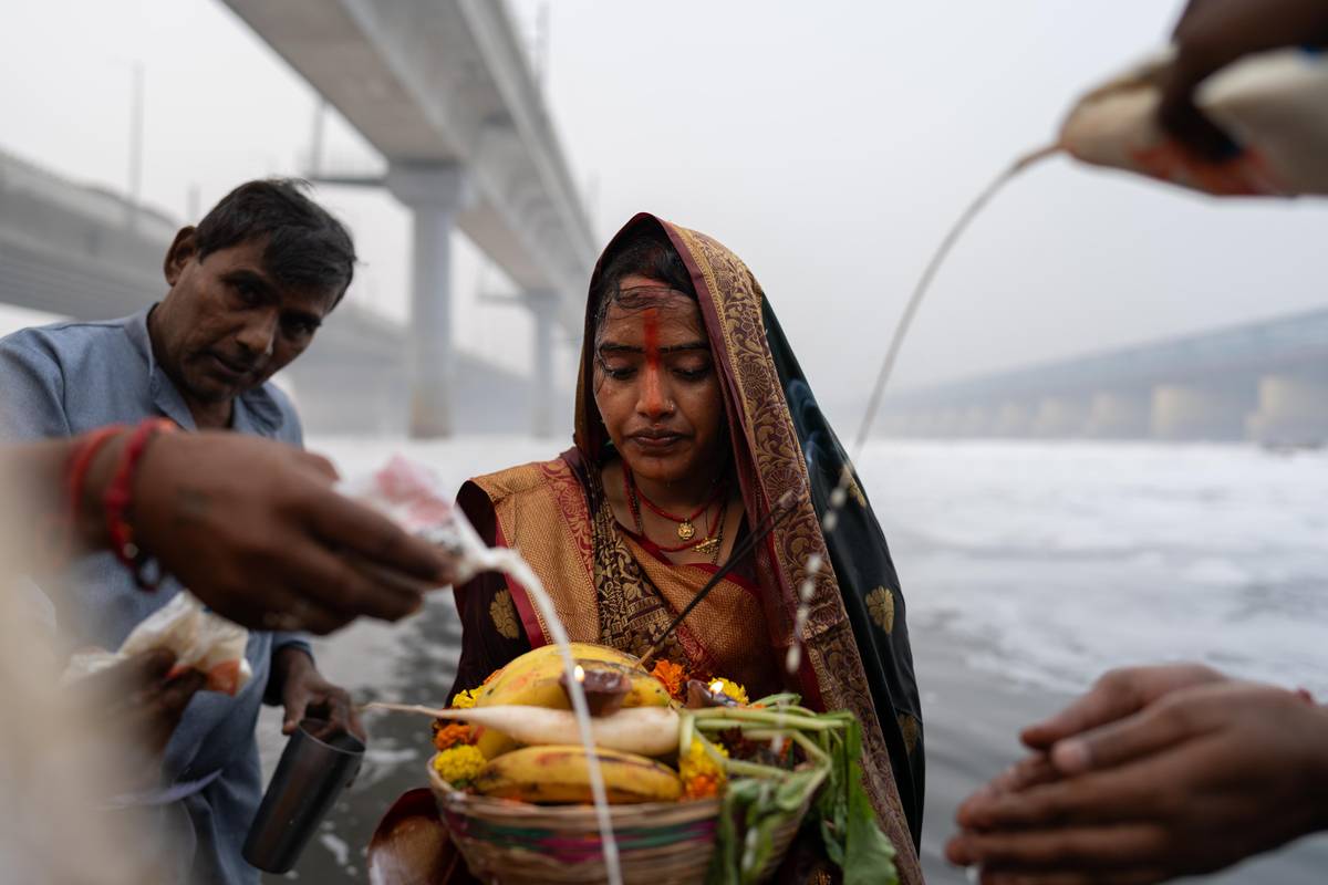 Tisíce lidí se ve čtvrtek přišly rituálně vykoupat v posvátné řece Jamuna v indickém městě Dillí. Hinduisté slavili svátek čhath púdžá zasvěcený bohu slunce Súrjovi a koupel je důležitou součástí oslav, napsala agentura AFP.