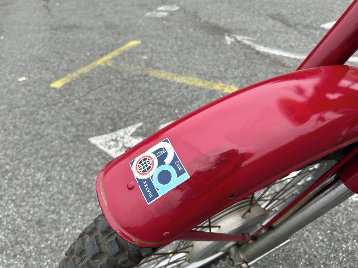 Samolepka, z Šestidenní z roku 1963, zda stroj v závodu skutečně startoval, ale nikdo neví. Vypadá na to až moc zachovale...