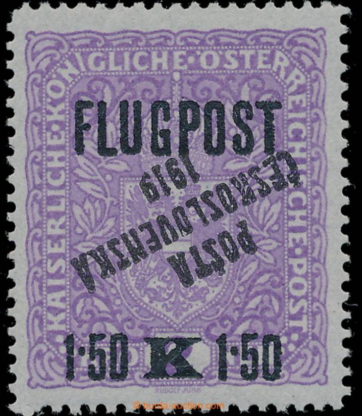 Známka s nápisem Flugpost a obráceným „Pošta Československa 1919“, je unikátním přetiskem původní rakouské letecké známky z roku 1918. Známka je ve vzácném „úzkém“ formátu a přetisk je převrácený. Tak vznikl unikát a jedna z nejdražších známek celé české poštovní historie. Odhadovaná cena je 2 miliony korun.