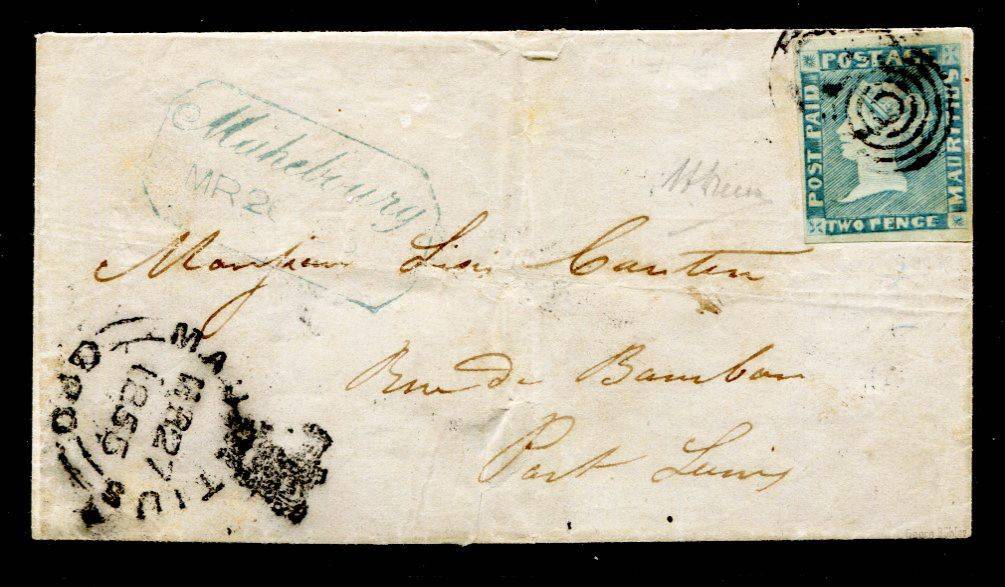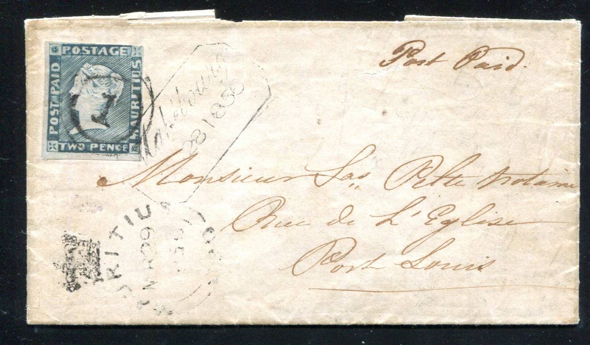 První pár koloniálních známek vyšel v roce 1847 na ostrově Mauricius v hodnotě 1 pence (oranžová) a 2 pencí (modrá). Na nich byl vyobrazen portrét královny Viktorie a označení POST OFFICE. Už kolem roku 1865 byly známky pojmenovány jako Červený a Modrý Mauricius a získaly status sběratelských klenotů.
