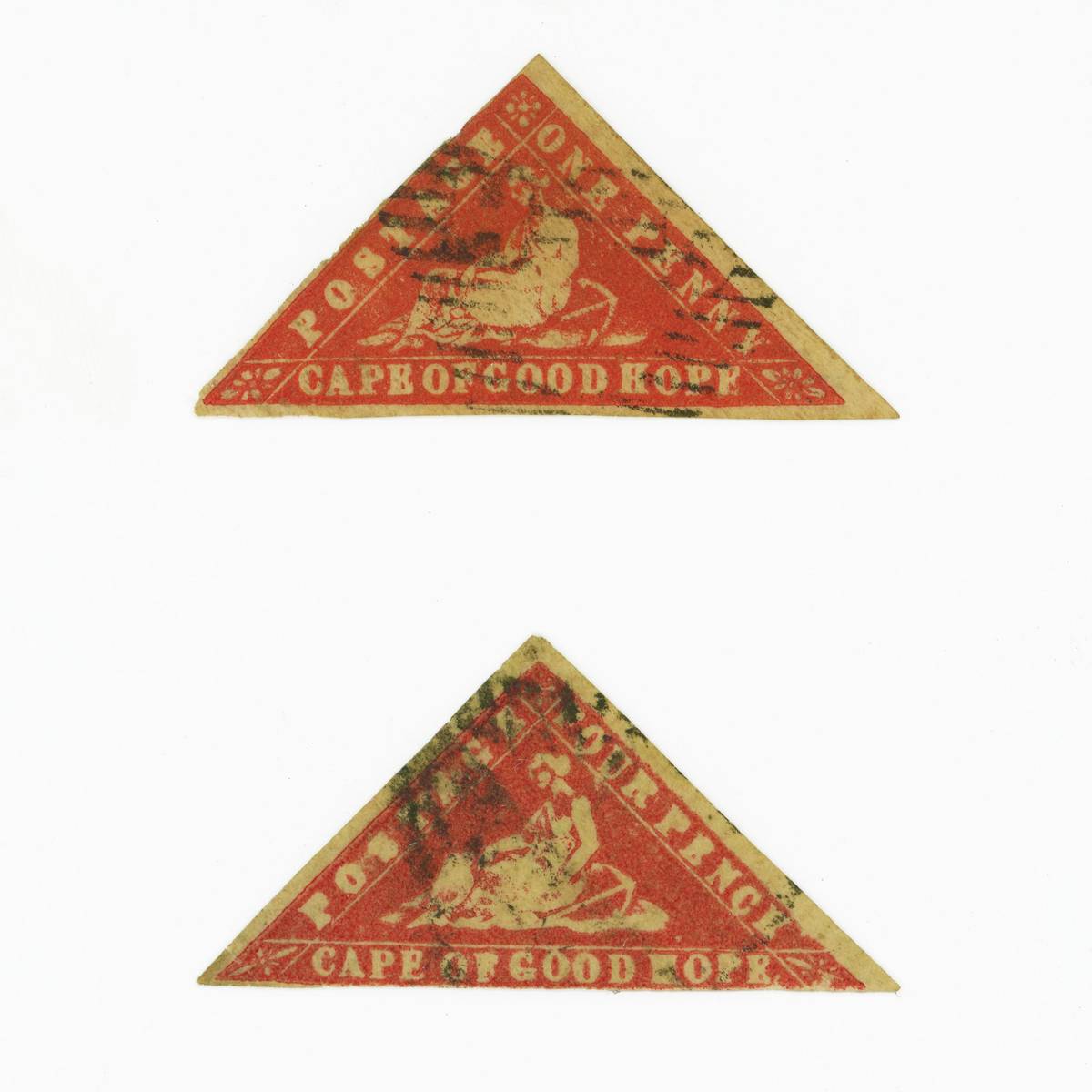 Errors of Colour, tedy červené čtyřpence a modré pence se staly ikonickými raritami britských kolonií. Červené chybotisky jsou v barvě rumělkové (vermilion) a karmínové a jsou přibližně dvakrát vzácnější. Díky použitému papíru jsou většinou více či méně poškozené. Původní známky byly na poštách vydány v září 1853 v trojúhelníkovém designu „Naděje“ výtvarníkem z Kapského města.