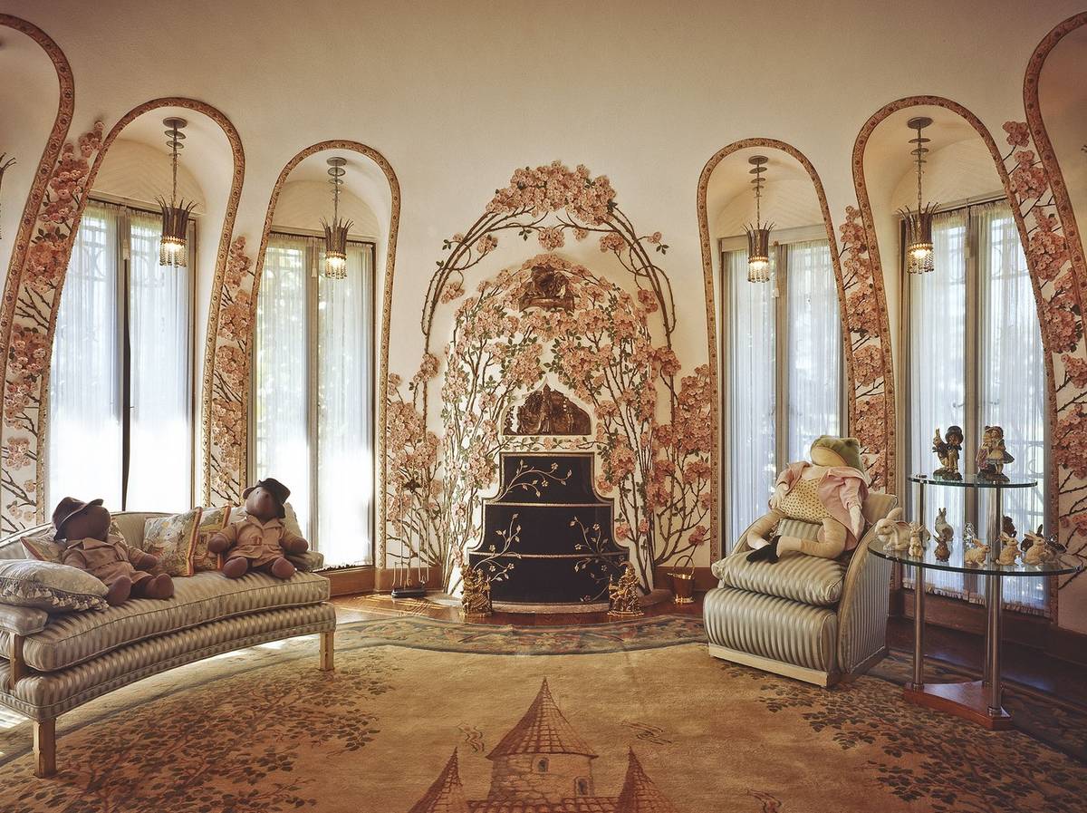 Dětské apartmá, které původně obývala dcera a dědička původního majitele Mar-a-Lago, Marjorie Merriweather Postová. Okolí krbu zdobí dřevěné popínavé růže.