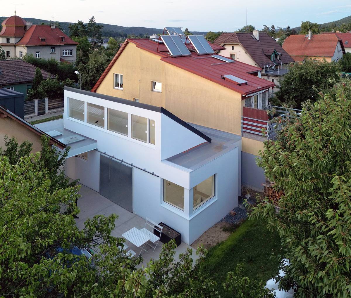 Při pohledu na ateliér z výšky je dobře vidět jeho celkové propojení s domem.