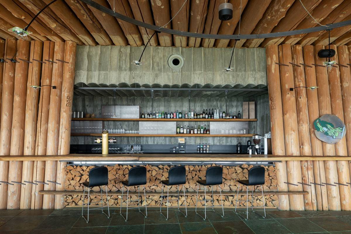 Dům, který zdálky působí jako jeskyně, je tvořený převážně z betonu a dřeva.