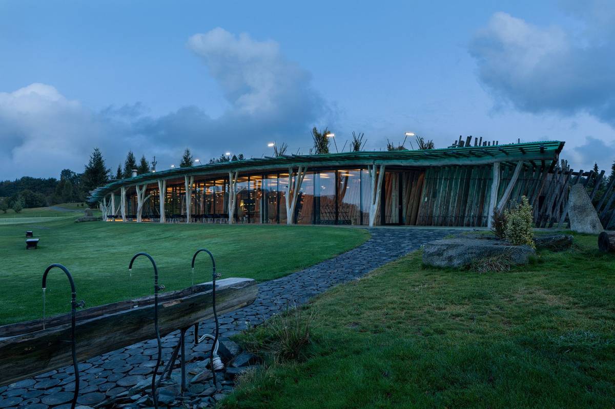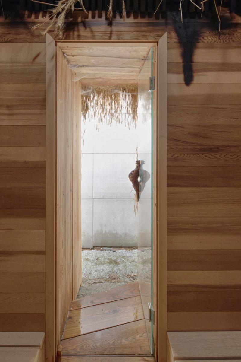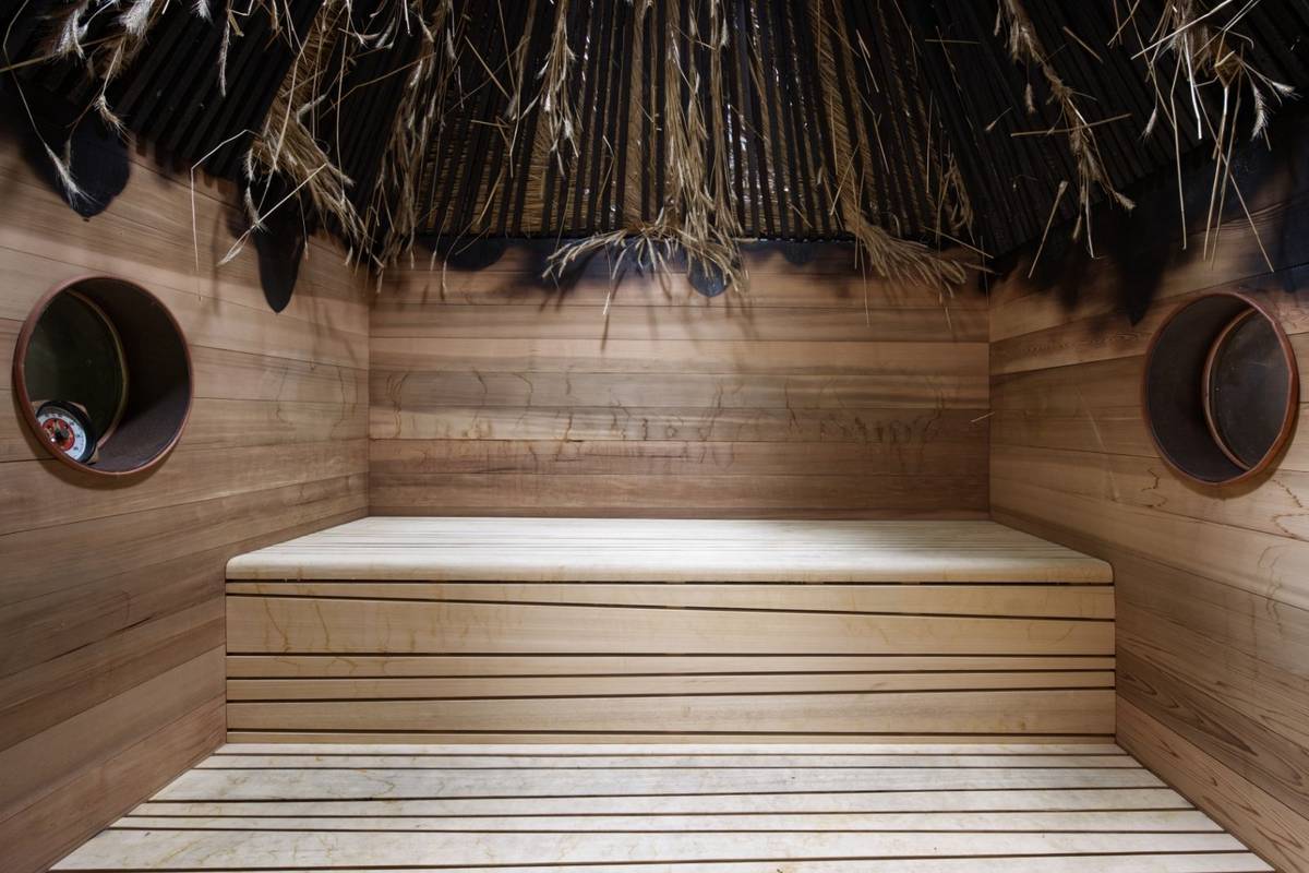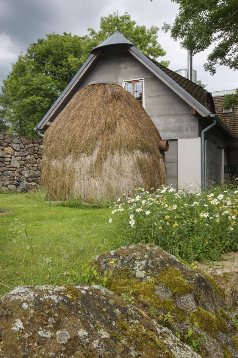 Navrhli ji ve znamení tradice, jako kupku sena. Co suchá tráva skrývá uvnitř, prozrazují jen některé detaily, jako je výduch z kamen.