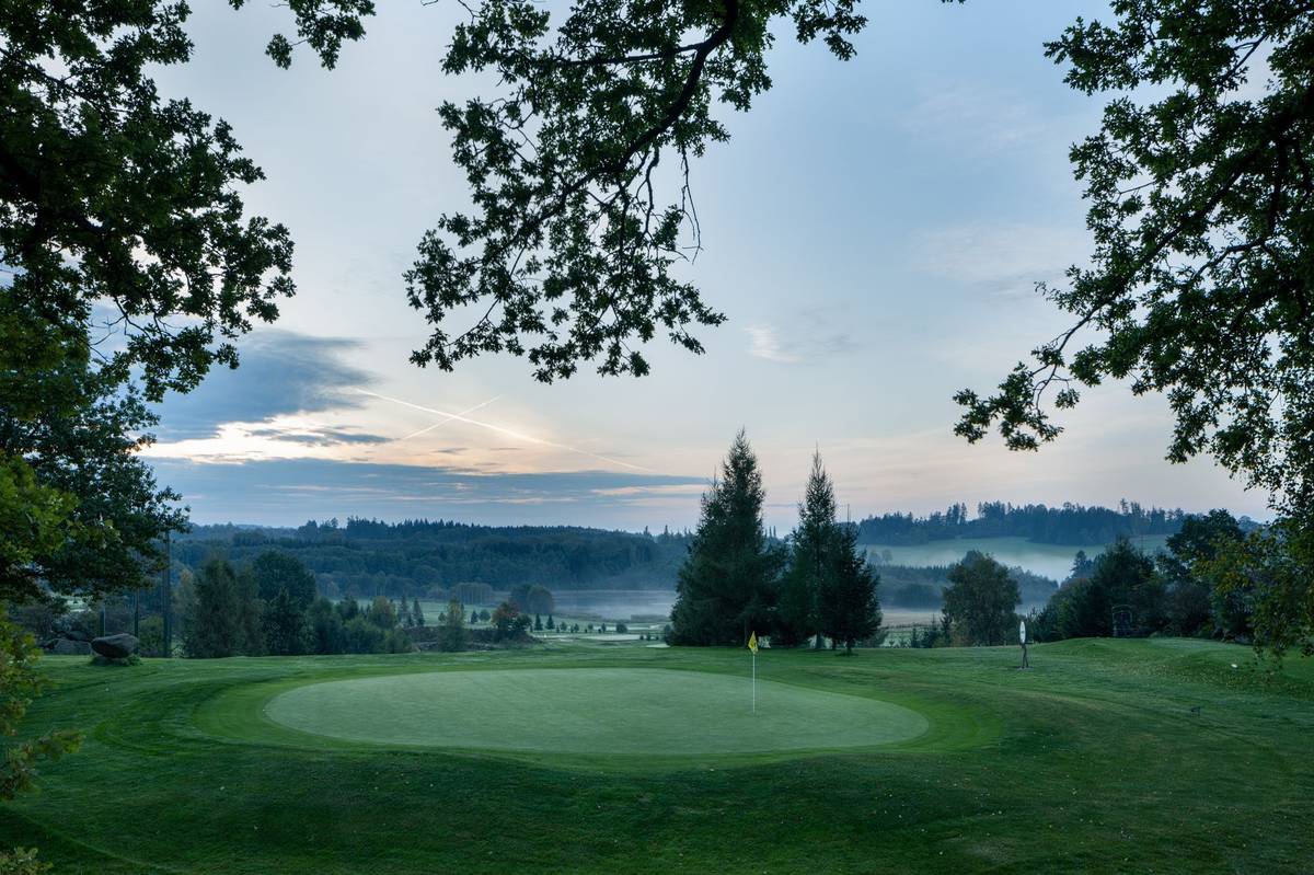 Hřiště má několik jezírek, tůněk a malebný zvlněný terén.