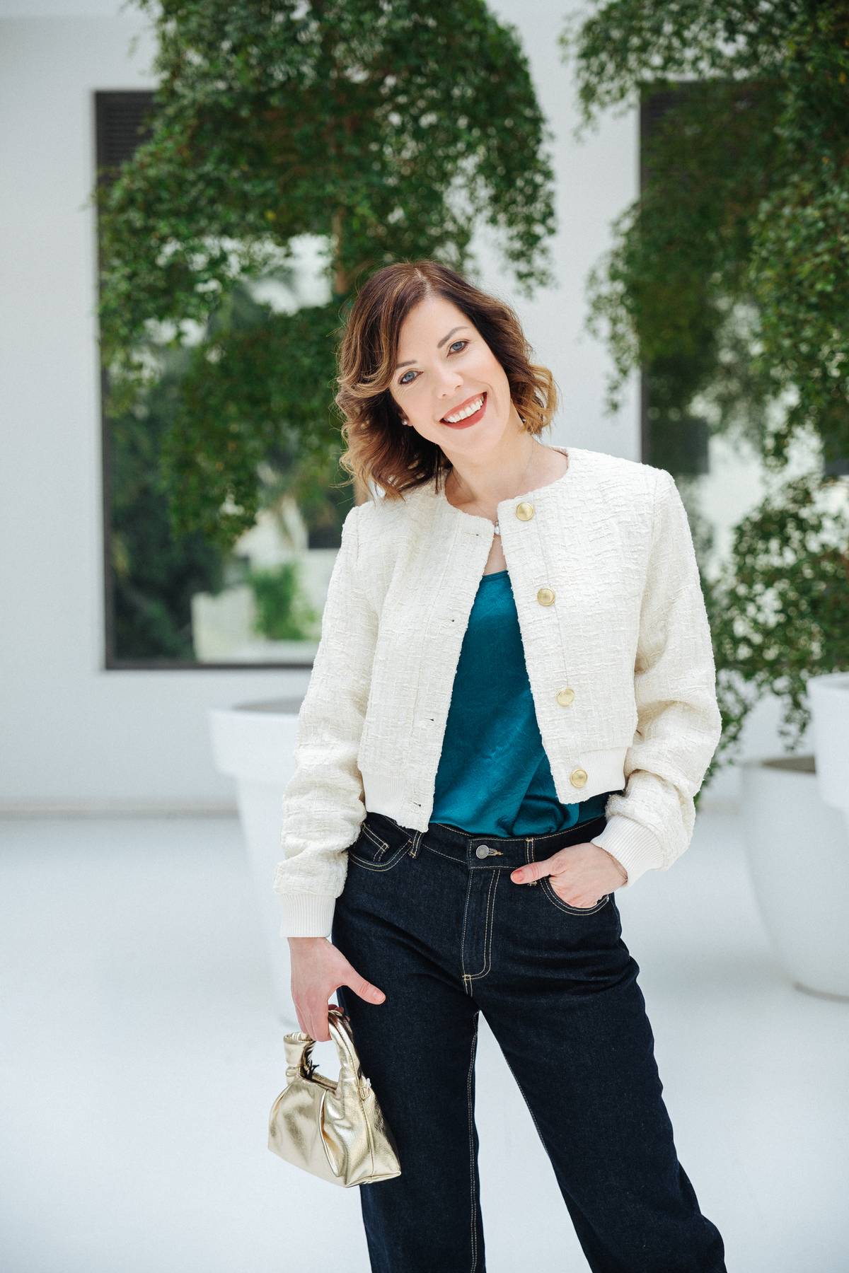 Džíny Reserved, 799 Kč. Top Marks & Spencer, 999 Kč. Kabátek Zara, 1 199 Kč