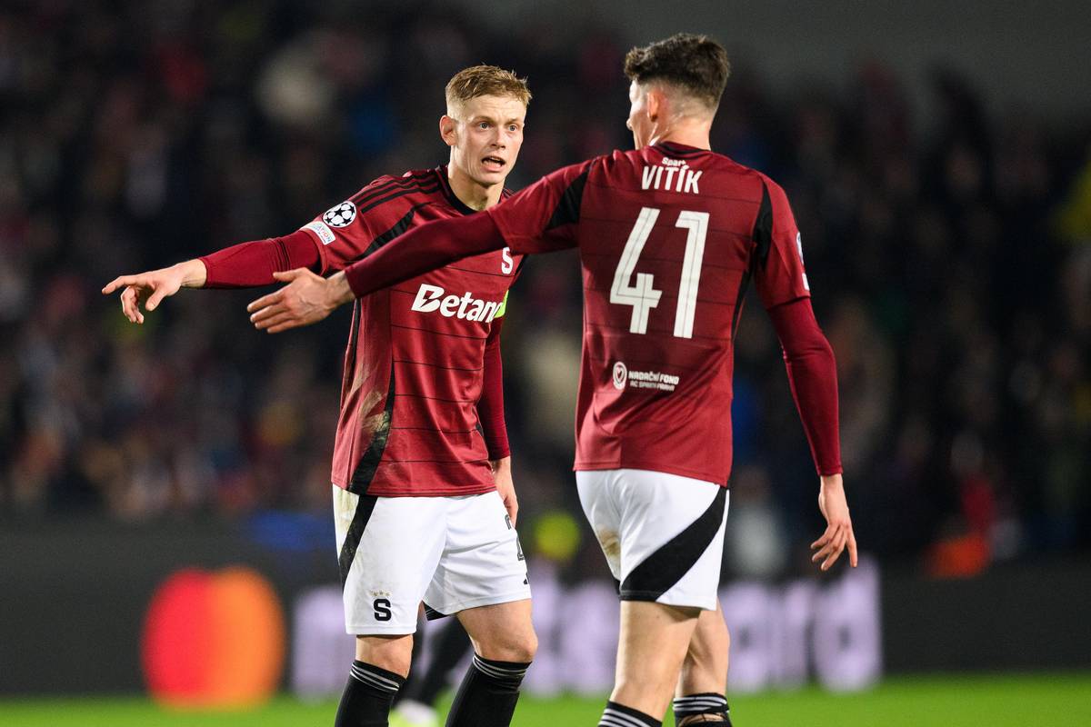 Filip Panák a Martin Vitík ze Sparty Praha v utkání ligové fáze Ligy mistrů, AC Sparta Praha - Atlético Madrid.