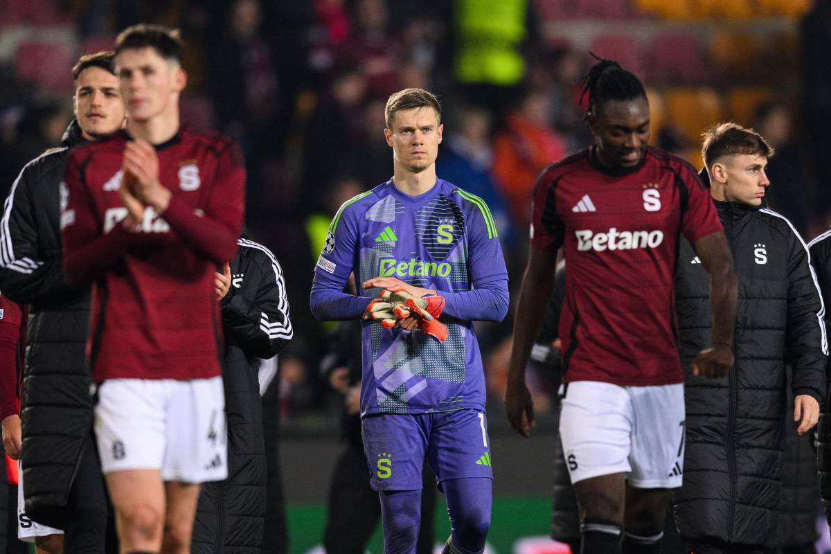 Brankář Sparty Praha Peter Vindahl po porážce s Atlétikem Madrid.