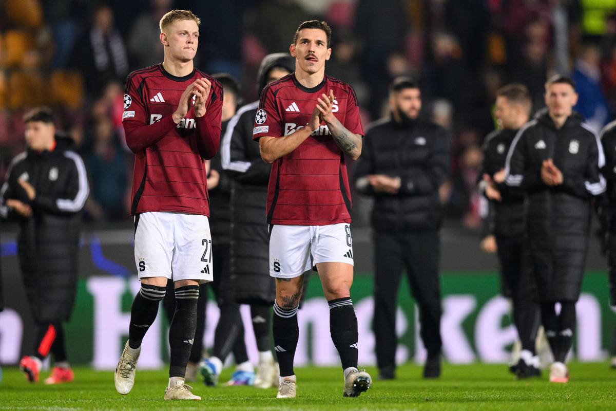 Filip Panák a David Pavelka ze Sparty Praha po porážce s Atlétikem v Lize mistrů.