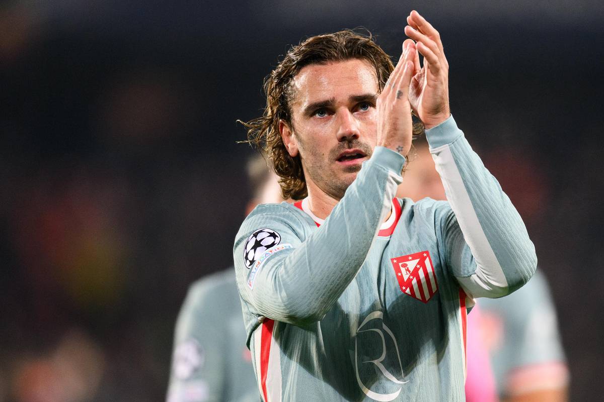 Antoine Griezmann z Atlética děkuje fanouškům po utkání ligové fáze Ligy mistrů se Spartou v Praze.