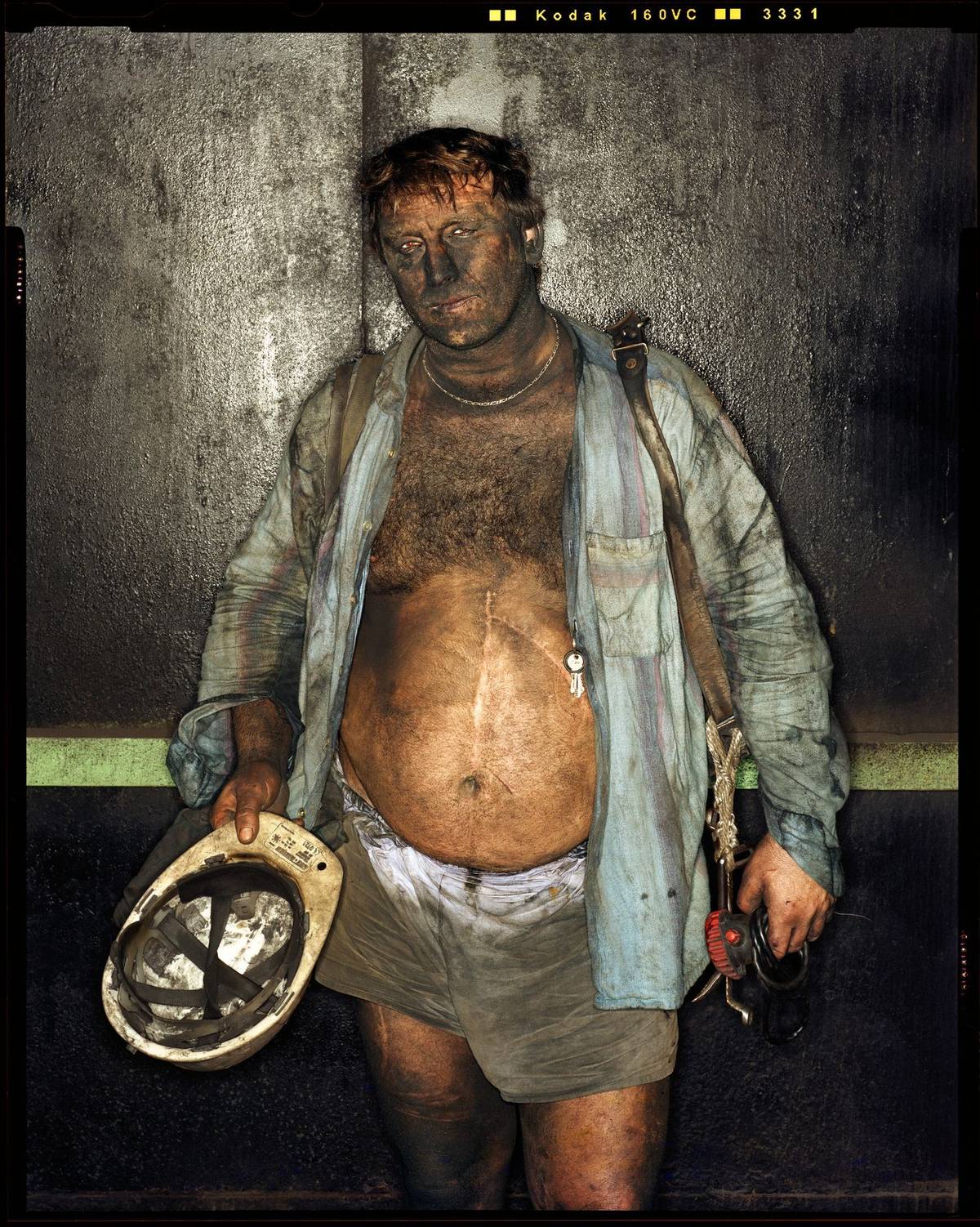 Zachytil černé tváře horníků i dělníky s rouškami.