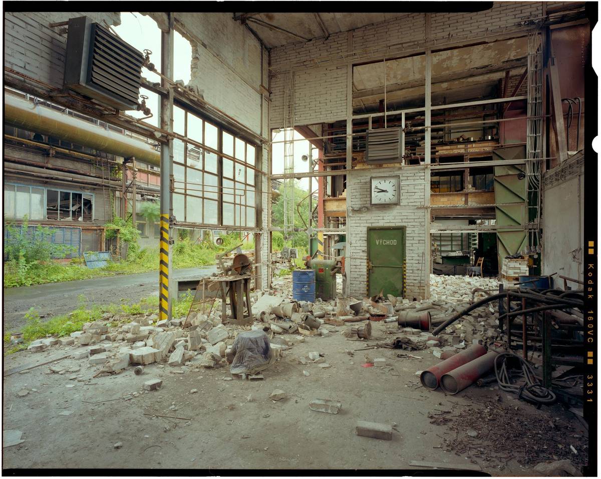 Monumentální architektura liduprázdných fabrik na snímcích evokuje vyprázdněný prostor sakrálních staveb, opuštěné stroje zase připomenou měsíční krajinu.