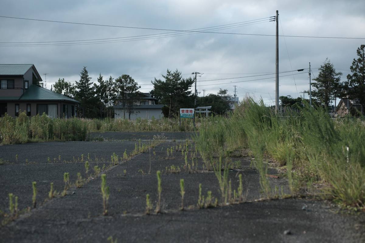 Země zatím neuvedla datum, kdy začne vodu do oceánu vypouštět. Na snímku cedule s nápisem „Na prodej“ na volném pozemku ve městě Namie, prefektura Fukušima, 4. července.