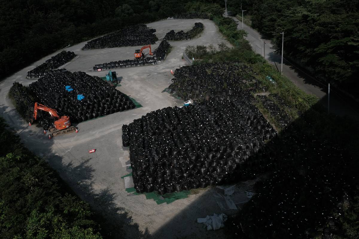 Metoda jeho ředění v mořské vodě se už ale používá jinde v Japonsku i v dalších zemích. Na snímku pytle s radioaktivním odpadem ve městě Namie, 3. července.