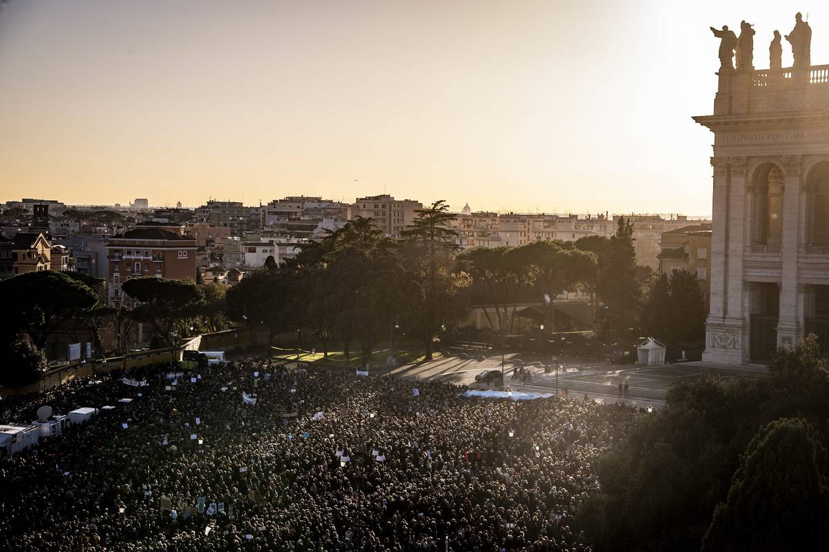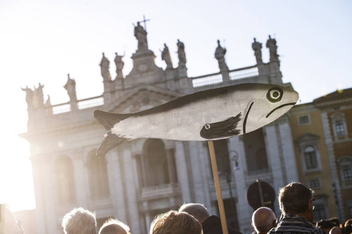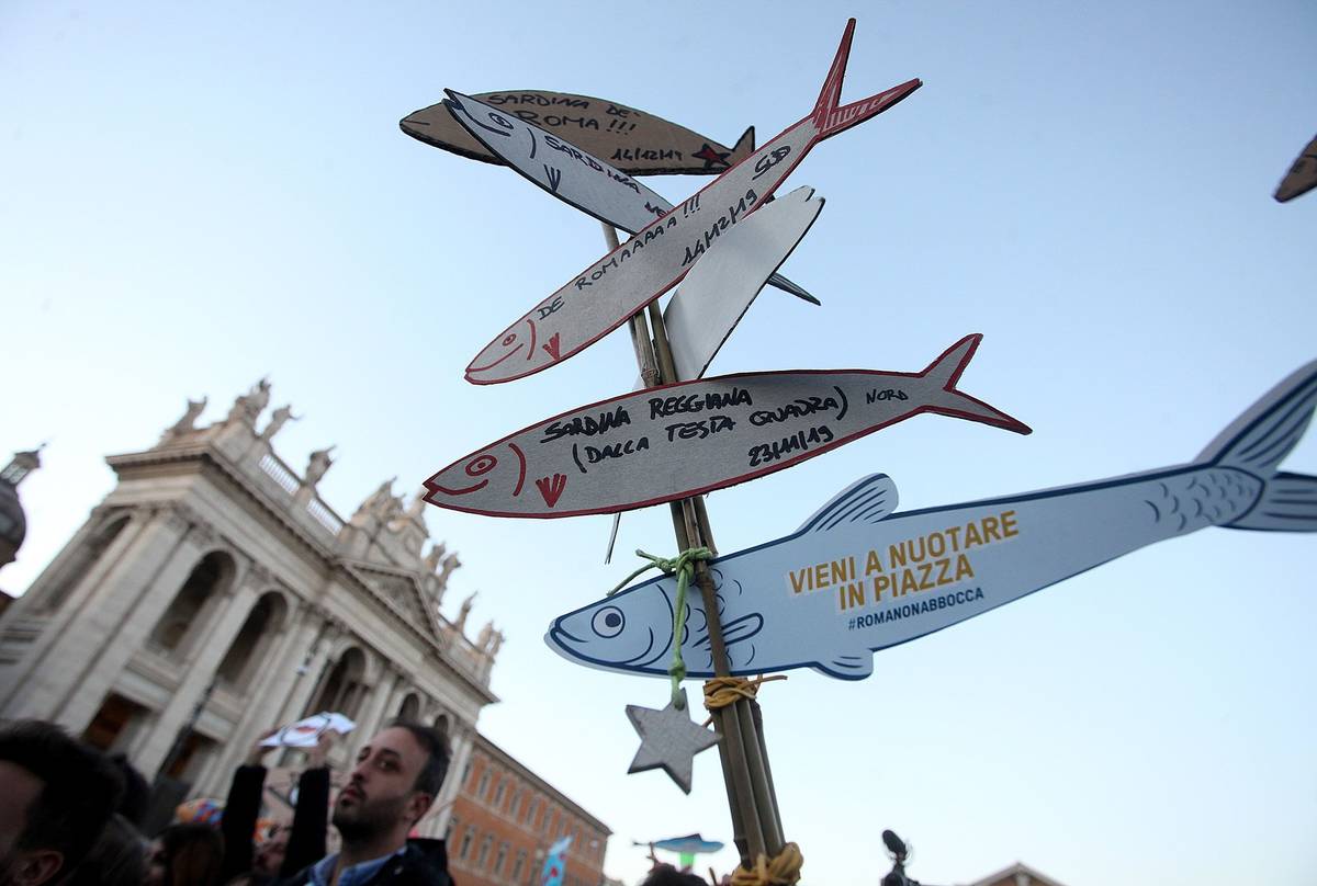 Do protestu hnutí Sardinek v Římě se zapojily desetitisíce lidí