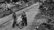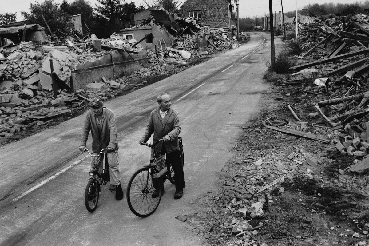 Karel Krejčí a Josef Schöfel ráno po bourání v ulici Čsl. armády, 14. října 1993.