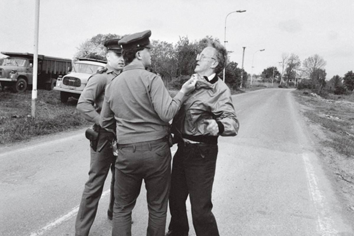 Další z významných osobností boje proti likvidaci se stal poslední libkovický starosta Stanislav Břicháček (na snímku), který v obci setrval až do posledních chvil. Na snímku se starosta dostal do sporu s policií, která chtěla, aby místo opustil.