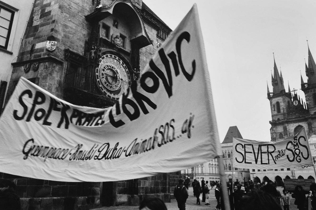 Demonstrace na Staroměstském náměstí v Praze, únor 1993.