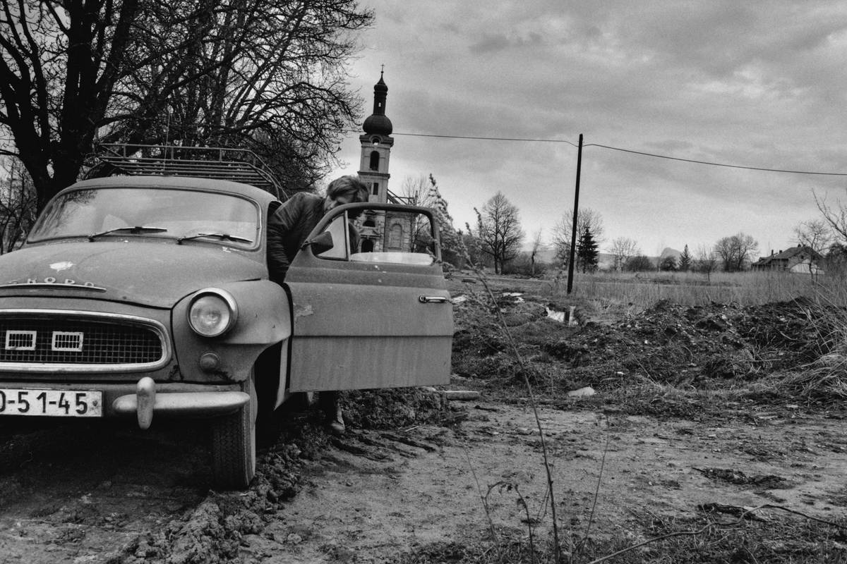 Místní obyvatelka paní Pastyříková, vyfocena v prosinci 1993. Ve vesnici vydržela mezi posledními obyvateli až téměř do konce.