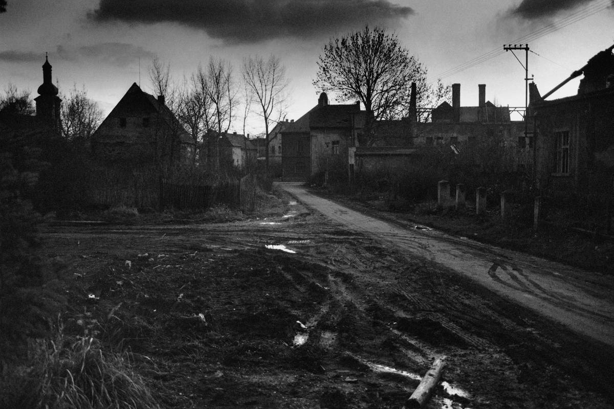 Své domy začali Libkovičtí prodávat těžební společnosti Doly Vítězného února Záluží v roce 1986. Na konci roku 1992 se obec pokusilo zachránit hnutí Greenpeace spolu s dalšími českými ekologickými organizacemi. Na snímku Vítězná ulice v Libkovicích, říjen 1992.